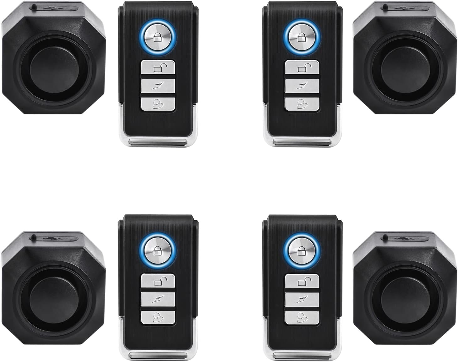 110dB Bike Alarm Wireless Vibration Motion Sensor with USB Charging Ports, Anti-Theft Bicycle Motorcycle Alarm with Remote, Waterproof, 4SET
