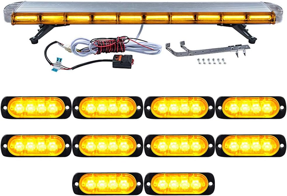 1PC 47" 22 COB LED 330W Emergency Strobe Light Bar & 10PCS 4-LED Flashing Grille Light Kit for Construction Vehicle Truck Trailer RV Accent & Off Road Lighting Amber