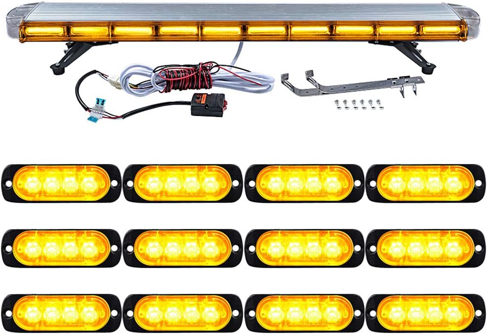 Astra Depot 1PC 47" 22 COB LED 330W Emergency Strobe Light Bar & 12PCS 4-LED Flashing Grille Light Kit for Construction Vehicle Truck Trailer RV Accent & Off Road Lighting AMBER