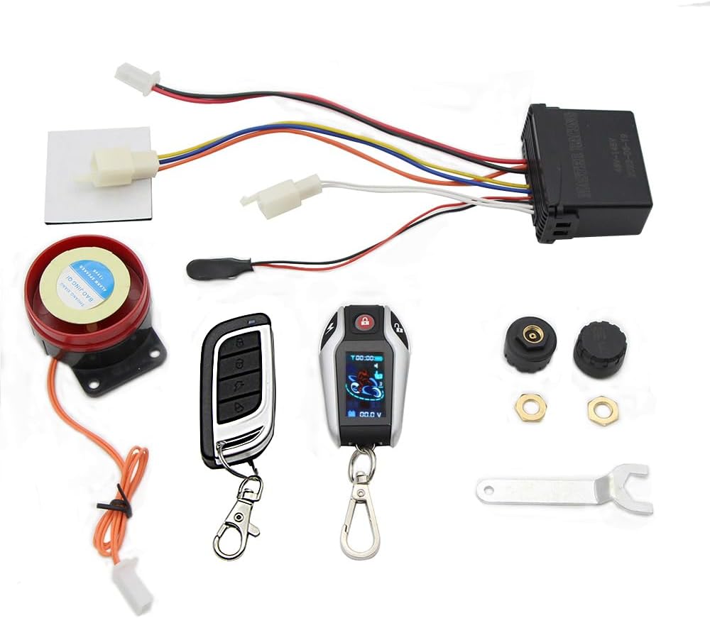 Two Way Anti-Theft Alarm 48v ~145v LCD Screen Electric Bike Motorcycle Alarm Auto Sensing for Security System Tire Pressure Monitor(1x Two Way)