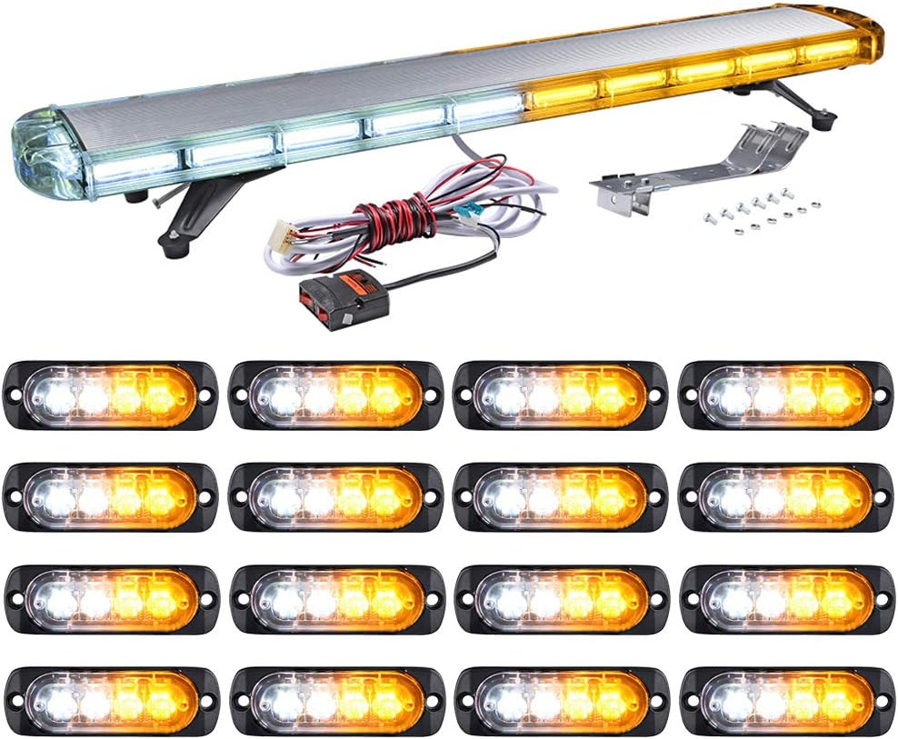 1PC 47" 22 COB LED 330W Emergency Strobe Light Bar & 16PCS 4-LED Flashing Grille Light Kit for Construction Vehicle Truck Trailer RV Accent & Off Road Lighting (Amber White)