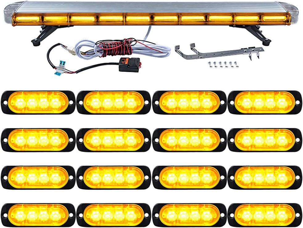 1PC 47" 22 COB LED 330W Emergency Strobe Light Bar & 16PCS 4-LED Flashing Grille Light Kit for Construction Vehicle Truck Trailer RV Accent & Off Road Lighting AMBER