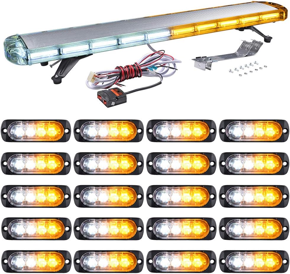 Astra Depot 1PC 47" 22 COB LED 330W Emergency Strobe Light Bar & 20PCS 4-LED Flashing Grille Light Kit for Construction Vehicle Truck Trailer RV Accent & Off Road Lighting (Amber White)