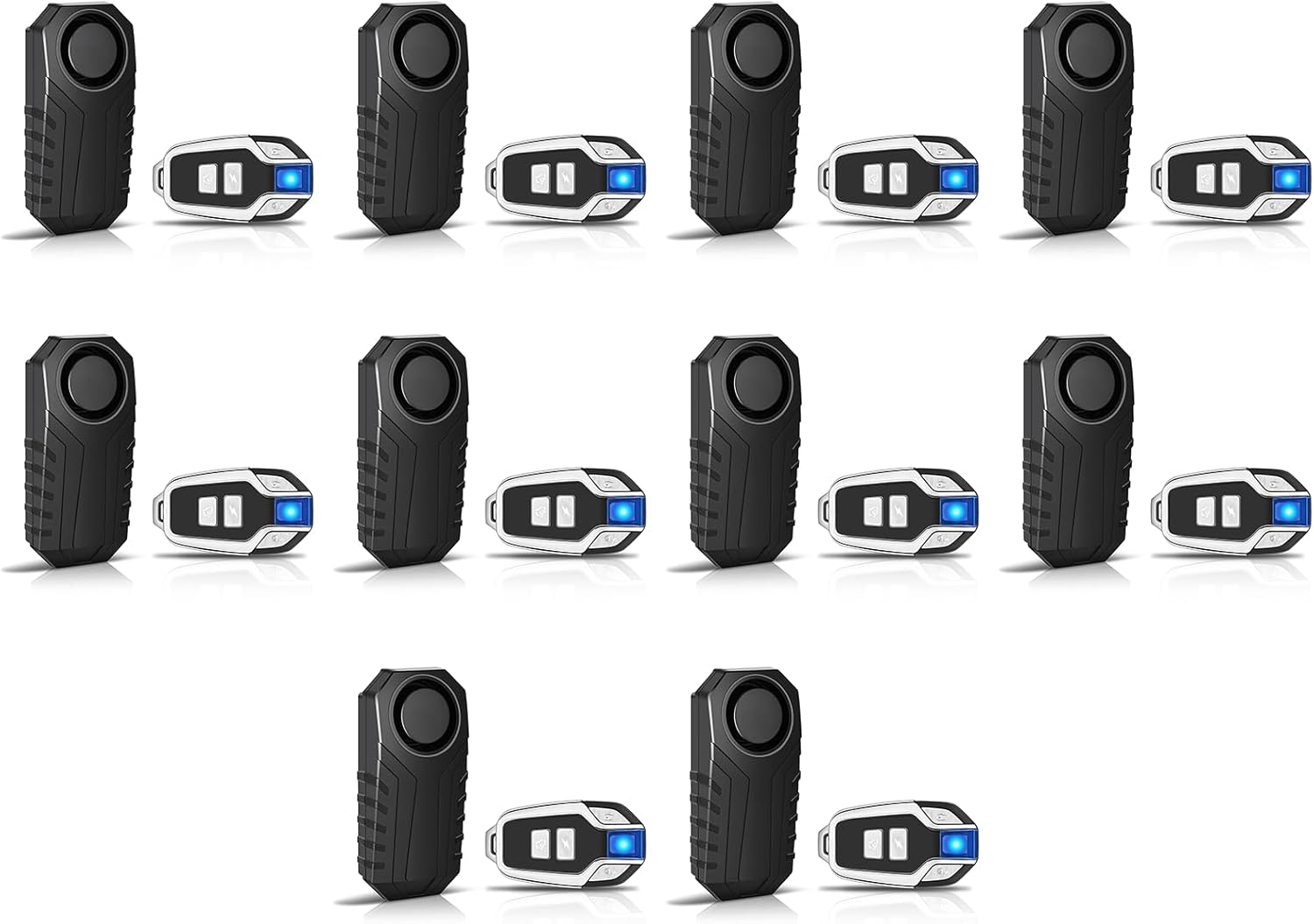 10Set Vibration Sensing Bike Alarm with Remote, 113db Loud Bicycle Alarm System Anti Theft, Wireless Motorcycle Alarm for Electric Bike Tricycle Mobility Scooter Vehicles Ebike for Cycling Security
