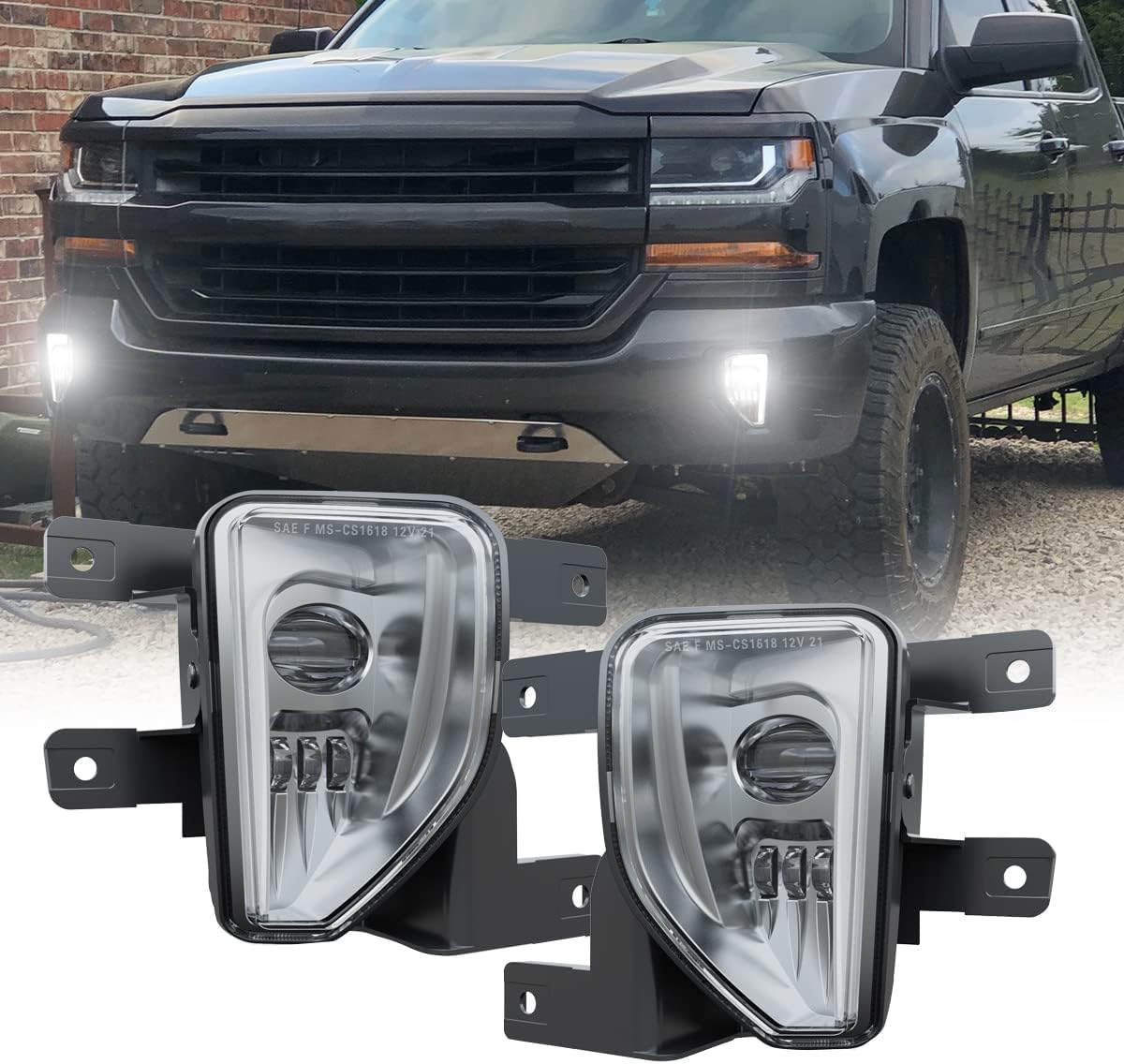LED Fog Lights Assembly Compatible with 2016 2017 2018 Chevy Silverado 1500 models DOT Bumper Driving Lights Fog Lamps Replacement with DRL Halo Chrome