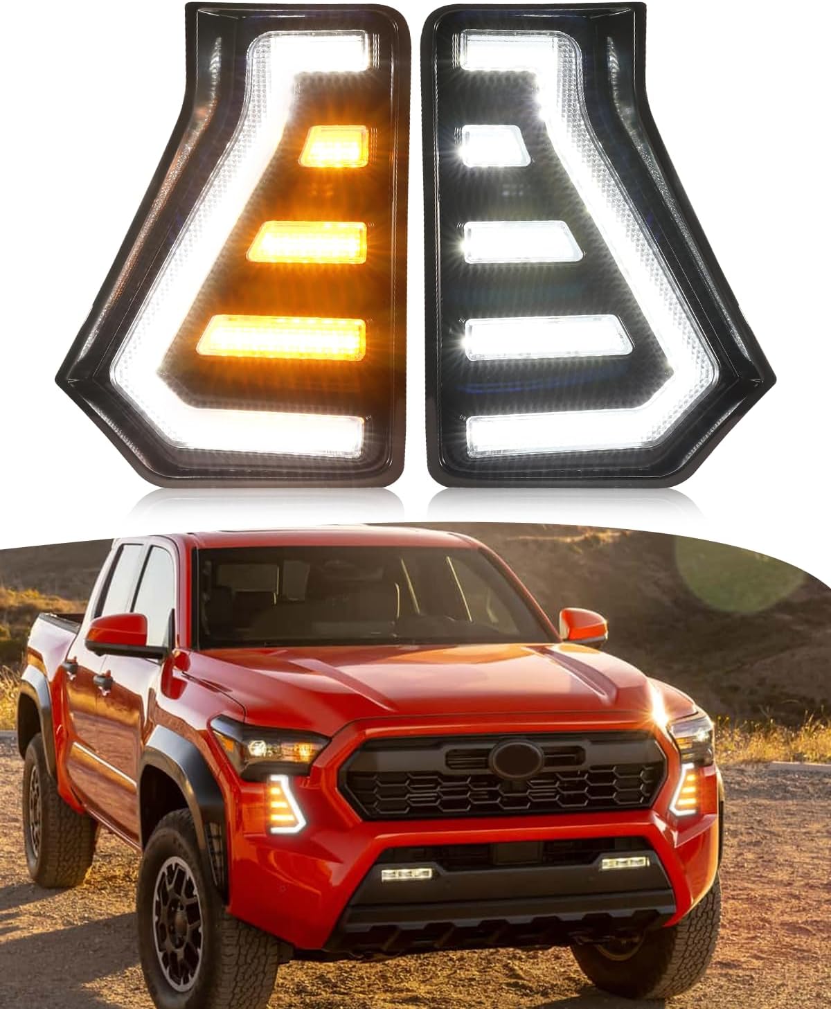 LED Fog Lights Kit for 2024 2025 2026 Toyota Tacoma DRL Daytime Running Lights Amber Turn Signal Front Bumper Lamps 4th Gen Toyota Tacoma Accessories (C-shaped)