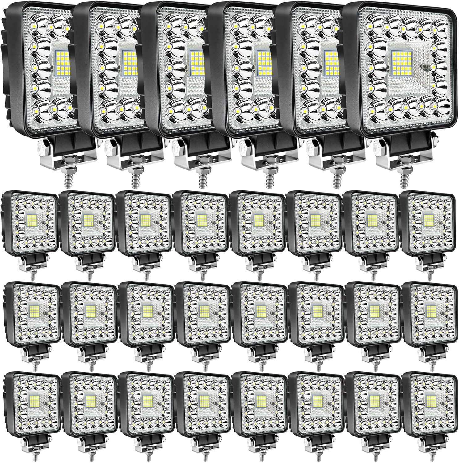 LED Light Bar MUVKQC 4.5 Inch LED Pod Lights 123W 12000lm Square Work Lights 12V 24V Cube Spotlight Waterproof Off-Road Driving Fog Light for Car Boat ATV UTV RV Golf Cart Lawn Mower (30pc)