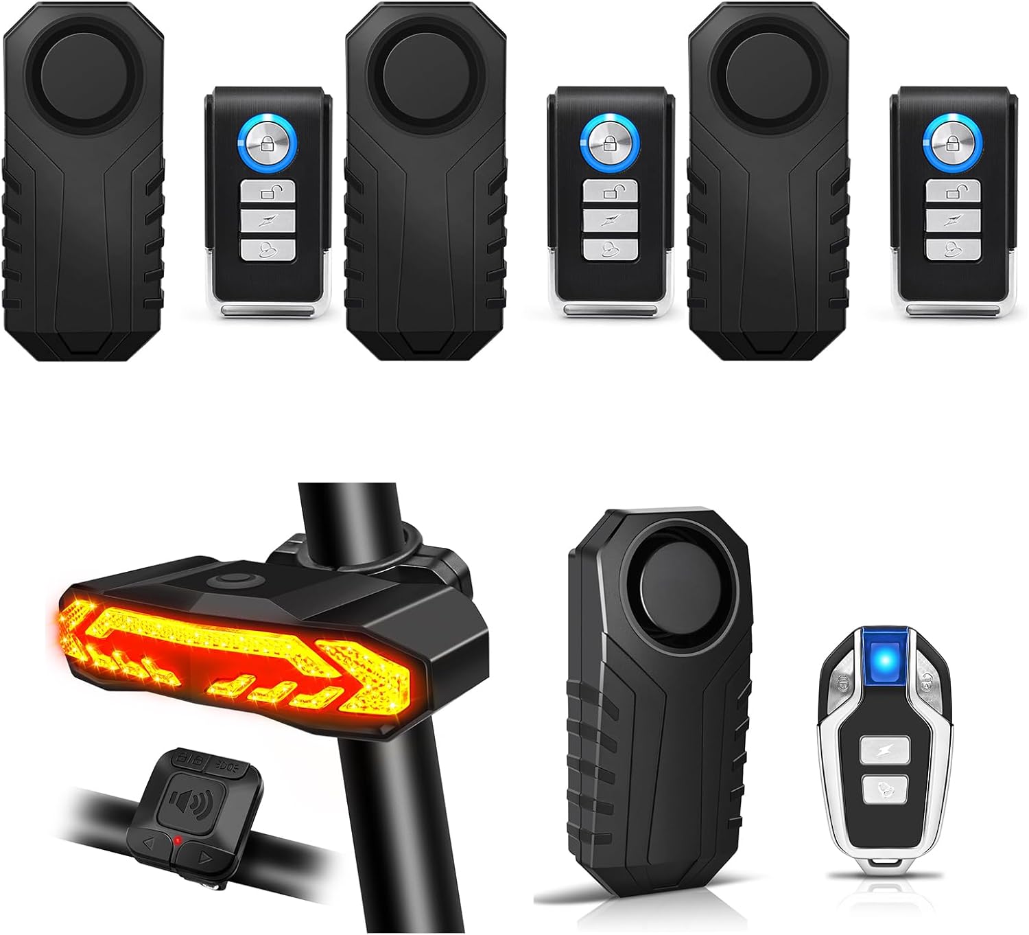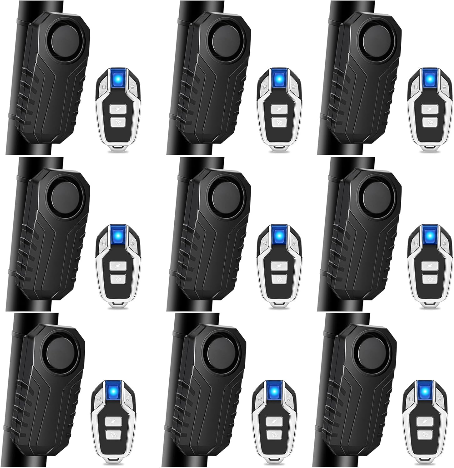 Bike Alarm with Remote,Bicycle Alarm Wireless,113dB Loud Bike Alarms for E-Bikes, Motorcycles, Scooter, Cars, Trailers, Luggage, Outdoor Riding and Cycling Safety IP65 Waterproof, 9Pcs