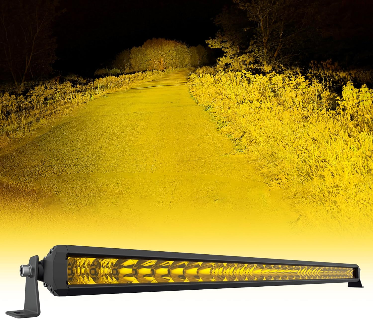4WDKING Yellow LED Light Bar 32 inch Off Road LED Spot Flood Combo Work Light High Bright Truck Driving Fog Lamp IP69K Waterproof for Truck Cars ATV UTV Boat