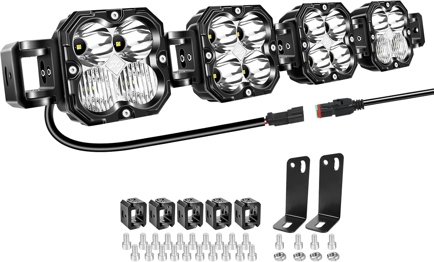 Willpower 27" 120W 12000LM LED Work Light Bar with DT Connector, Square Off Road Driving Lights 12V 24V Fog Lamps for Car Vehicle Truck 4x4 Boat Tractor, 6000K White, Waterproof Headlight, Spot Flood