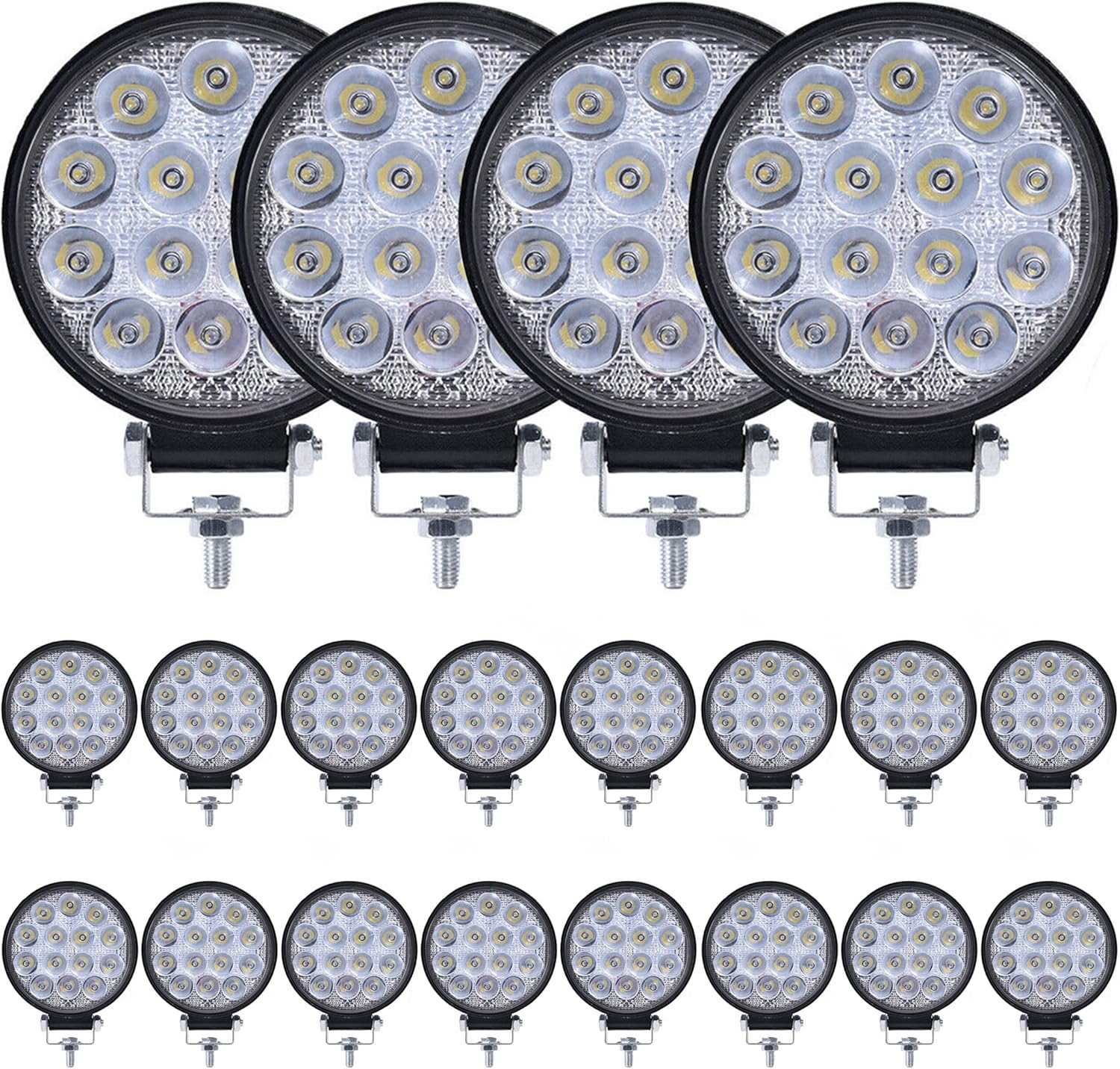LED Work Lights for Truck,MUVKQC 20pcs 4.5Inch Round Light Pods,12/24V Spot Flood LED Lights Off-Road Fog Driving Roof Bar Fit for Vehicle ATV SUV UTV 4WD Boat Tractor,Hunters