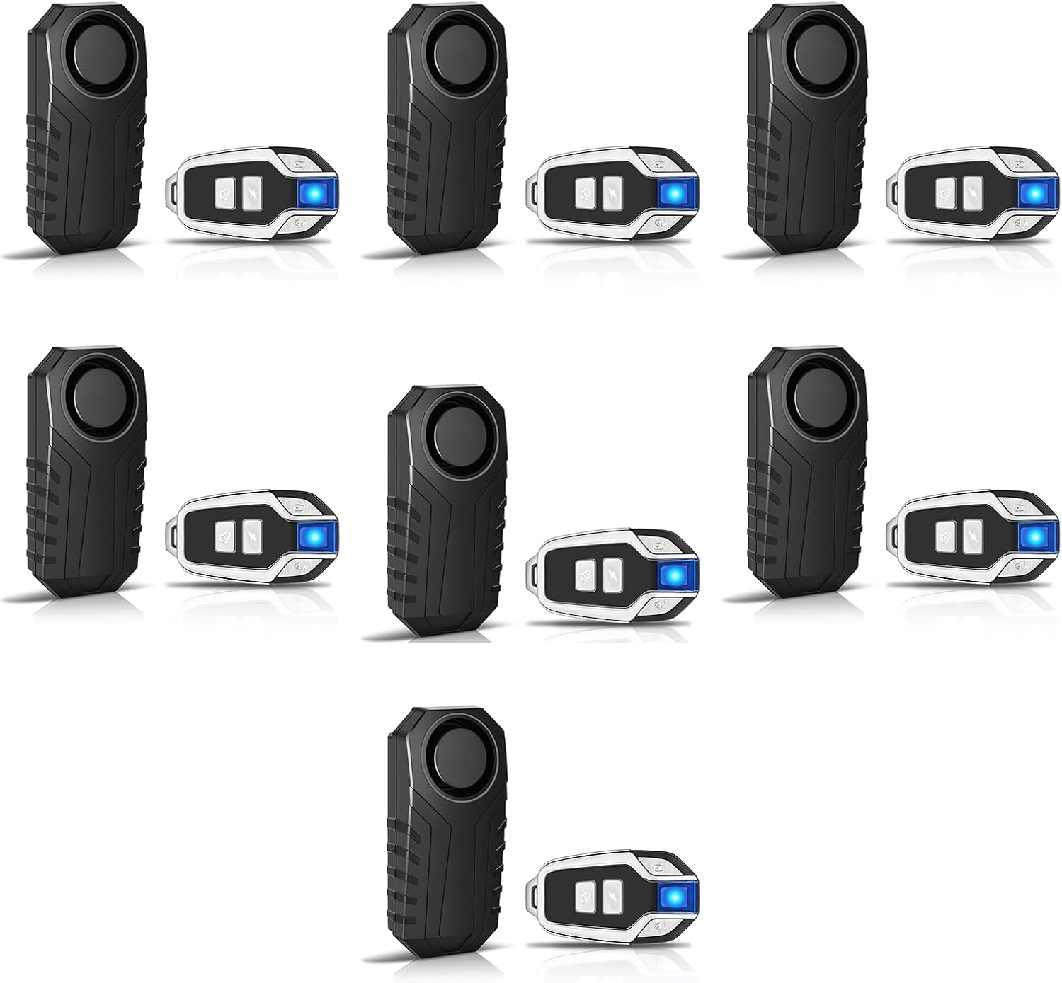 113db Bike Alarm,NineLeaf Bike Bike Alarm with Remote,Bicycle Alarm System Anti Theft,IP65 Waterproof,7 Levels of Sensitivity,Easy Installation,for Bicycles, Electric Bicycles,Motorcycle,7PK