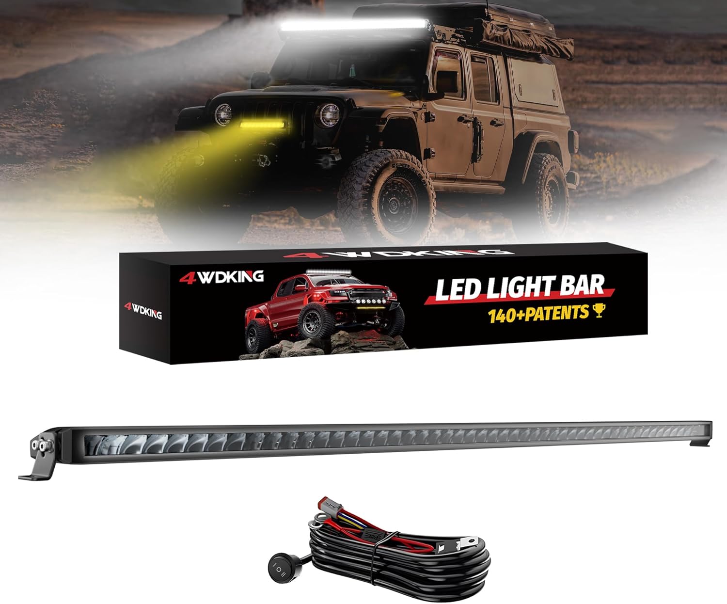 4WDKING 52inch Dual-Color Slim LED Light Bar, 180W Spot Flood Combo Beam with Wiring Harness Kit, Screwless Design, IP68&IP69K Waterproof, Off Road Driving Lamp Fog Lights for Truck Pickup ATV UTV SUV