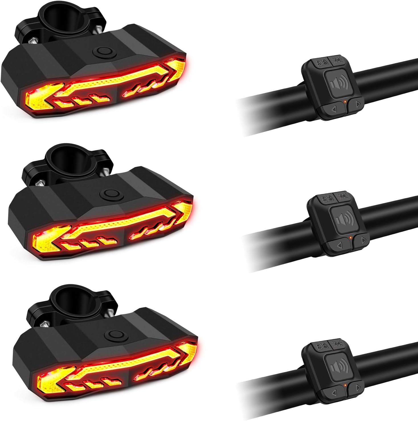 NineLeaf Bike Tail Light Rechargeable,Anti-Theft Alarm Systems,Bike Tail Light with Turn Signals,IP64 Waterproof and High Temperature Resistant,Six Lighting Modes,for Bicycles, Electric Vehicles,3PK