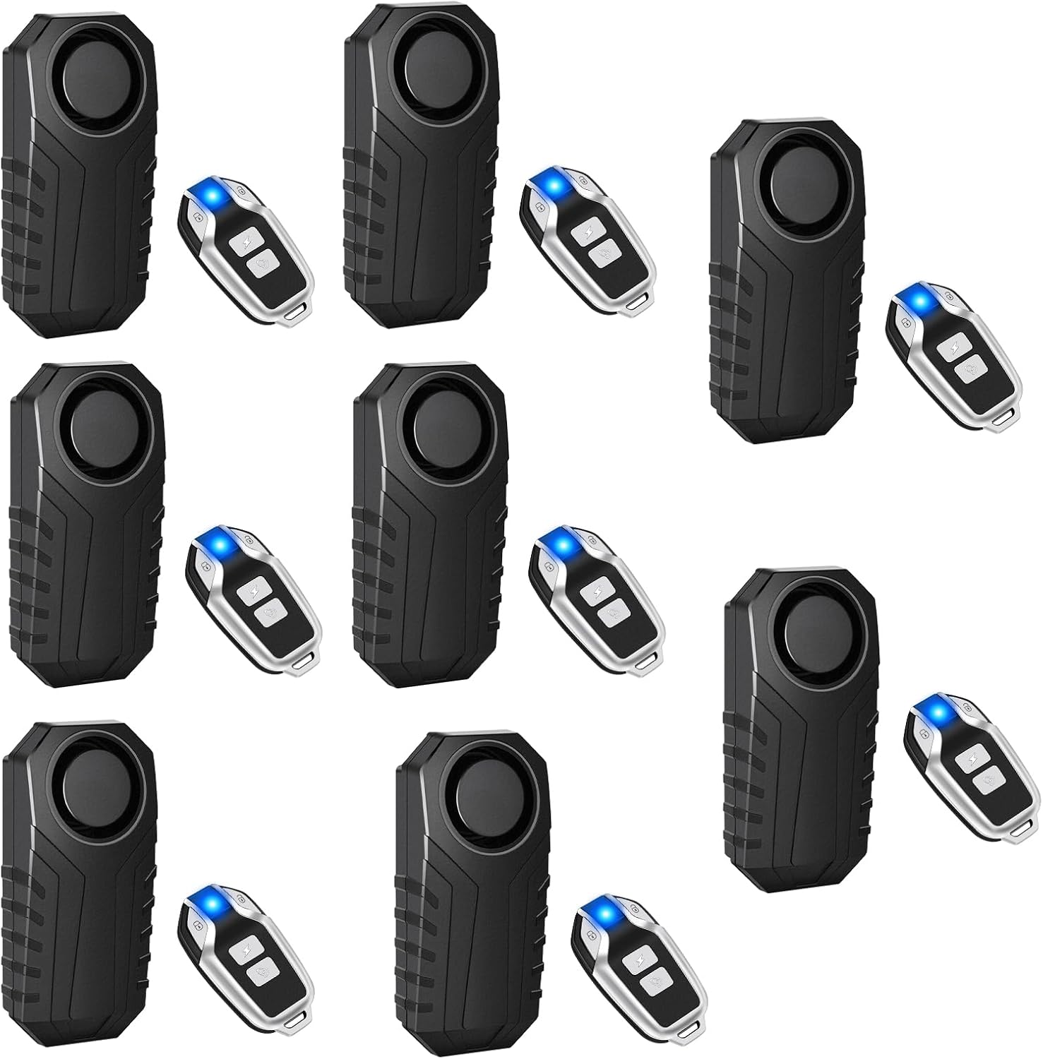 Bike Alarm 8Pcs, Bike Alarms for Ebikes, Alarm for Bike, Motorcycle Alarm Vibration Motion Sensor Cycling Security 113db Super Loud IP65 Waterproof Adjustable Volume Sensitivity