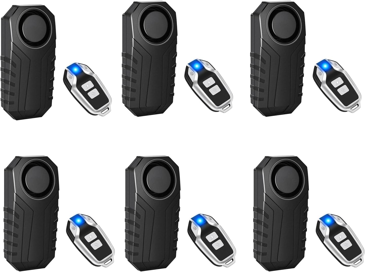 Bike Alarm 6Pcs, Bike Alarms for Ebikes, Alarm for Bike, Motorcycle Alarm Vibration Motion Sensor Cycling Security 113db Super Loud IP65 Waterproof Adjustable Volume Sensitivity