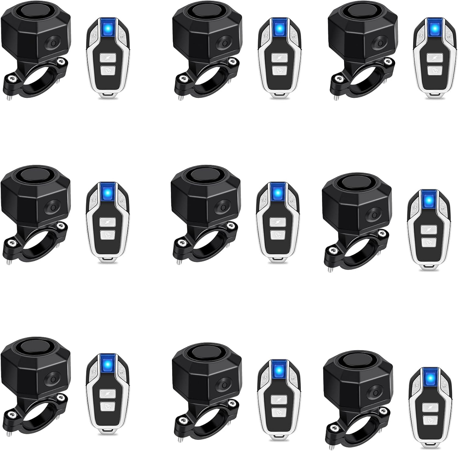 NineLeaf Rechargeable Bike Alarm, Scooter Alarm with Bracket, Trailer Anti Theft Alarm, Charging Bike Alarm with Remote IP65Waterproof Wireless Car Motion Sensor Alarm for Bicycle Ebike Motorcycle 9PK