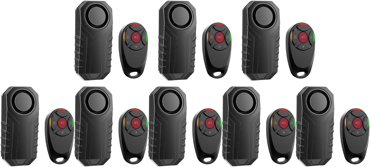 NineLeaf Rechargeable Bike Alarm, Scooter Alarm with Bracket, Trailer Anti Theft Alarm, Charging Bike Alarm with Remote IP65Waterproof Wireless Car Motion Sensor Alarm for Bicycle Ebike Motorcycle 8PK