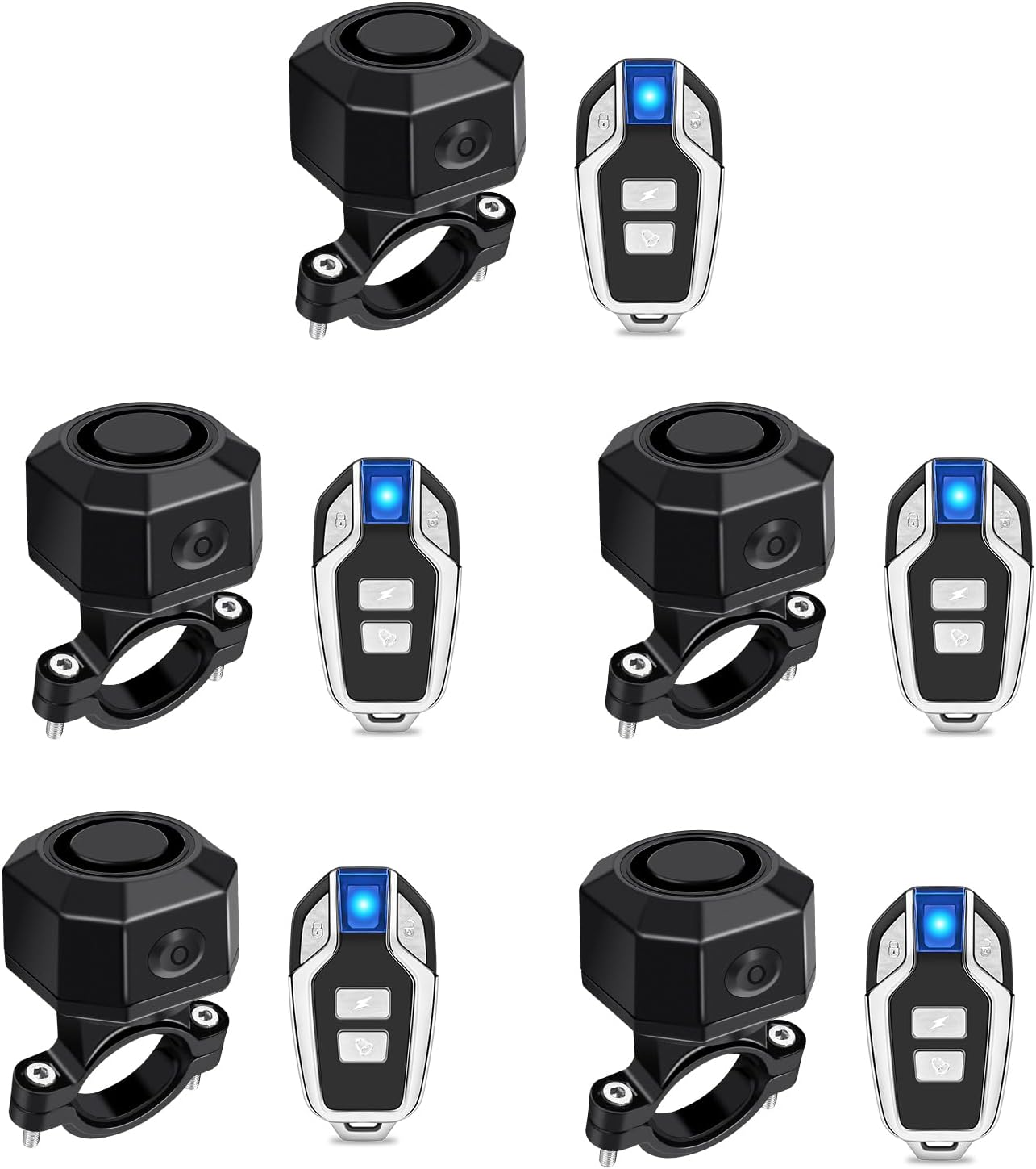 NineLeaf Rechargeable Bike Alarm, Scooter Alarm with Bracket, Trailer Anti Theft Alarm, Charging Bike Alarm with Remote IP65Waterproof Wireless Car Motion Sensor Alarm for Bicycle Ebike Motorcycle 5PK