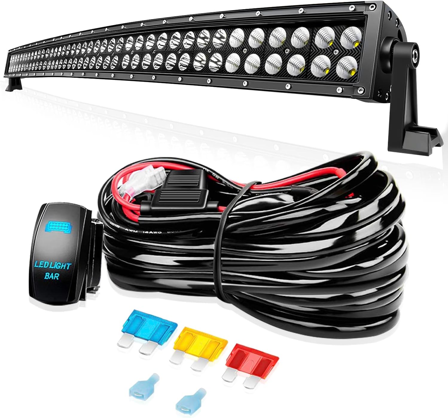 Avenemark 42Inch 240W Curved LED Light Bar Spot Flood Combo Beam LED Off Road Lights with 14AWG 5Pin Rocker Switch Wiring Harness Kit for Jeep Truck ATV UTV SUV Boat Lighting