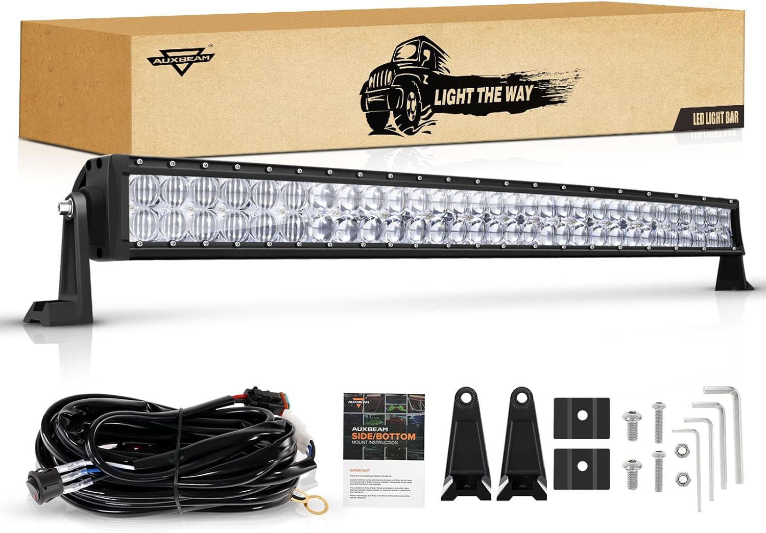 Auxbeam 42 Inch LED Light Bar, 240W Offroad Driving Curved Lights with 5D Reflectors, 24000LM Spot Flood Combo Beam Off Road Fog Light with DT Wiring Harness Kit for Jeep Pickup Trucks SUV ATV UTV