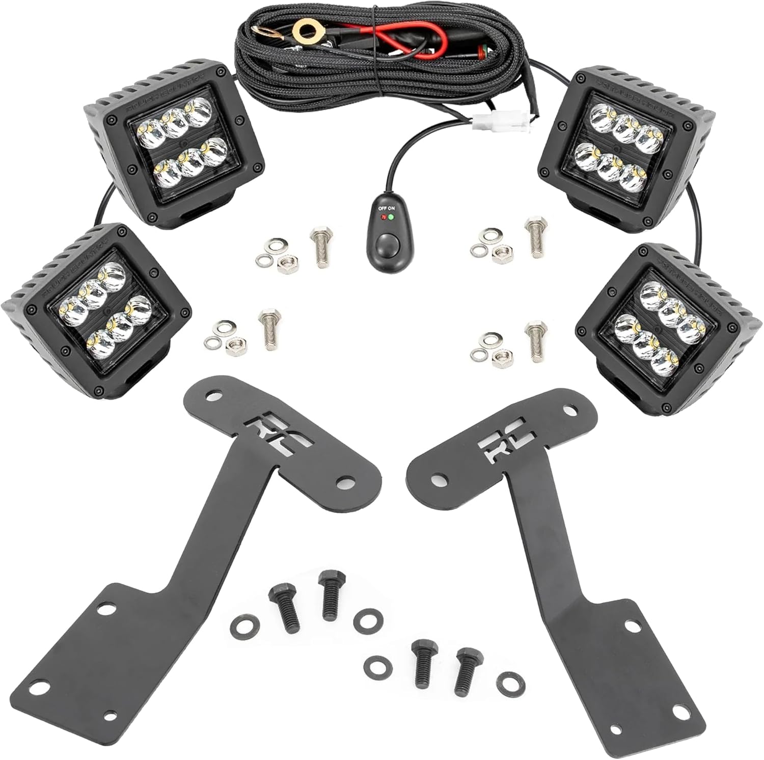 Rough Country Quad 2" Cube LED Light Kit for Toyota Tundra (2014-2021) - Lower Windshield Mount, 9,600 Lumens, Spot Combo Off-Road Lighting