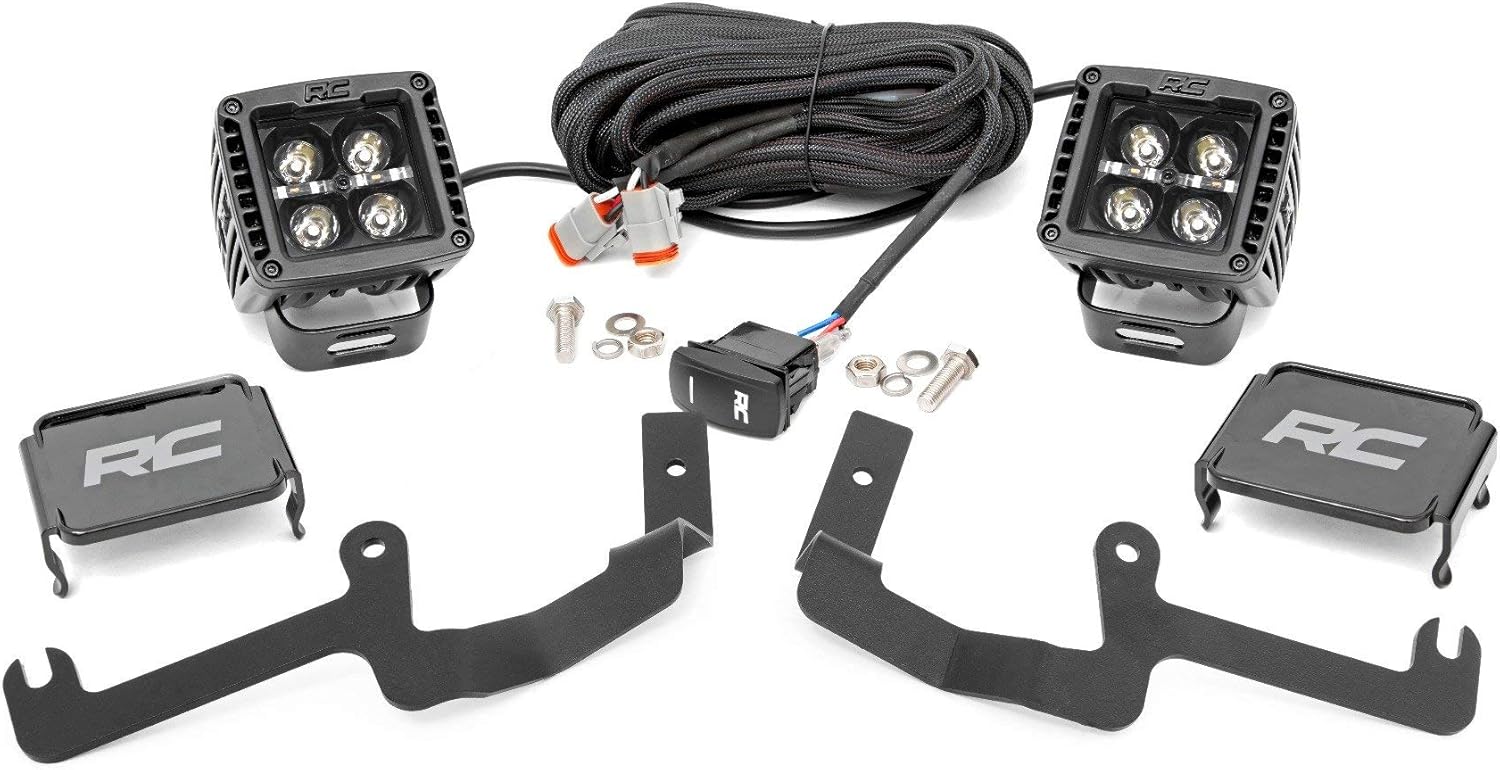 Rough Country Dual 3.5" Round LED Ditch for Toyota Tacoma (2005-2015) - (2) 3.5-in Round LED with Amber DRL