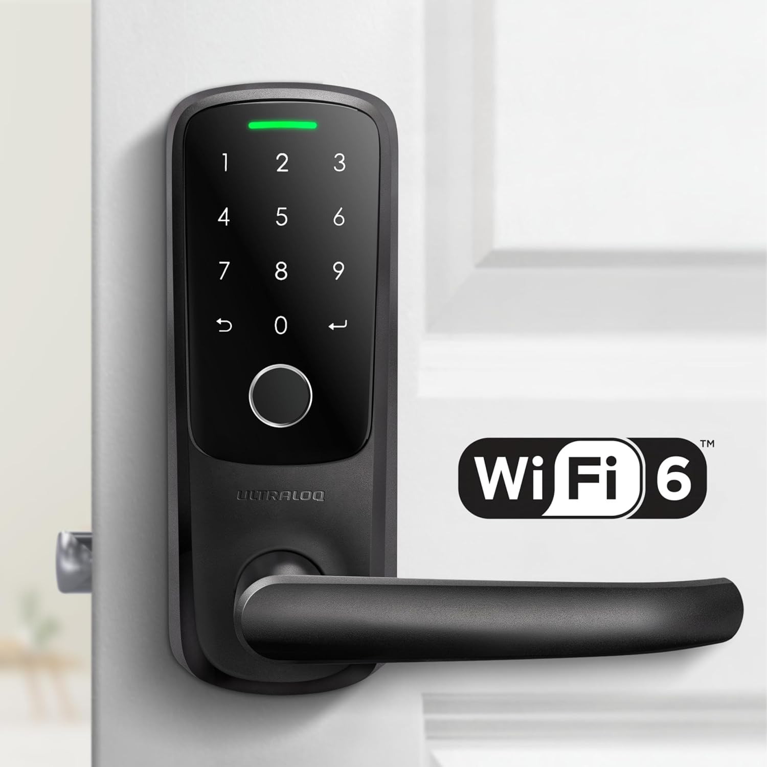 ULTRALOQ Latch 5 World's First Built-in WiFi Smart Lock with Fingerprint, 5-in-1 Keyless Entry Door Lock with Touch Digital Keypad, App Control, Black