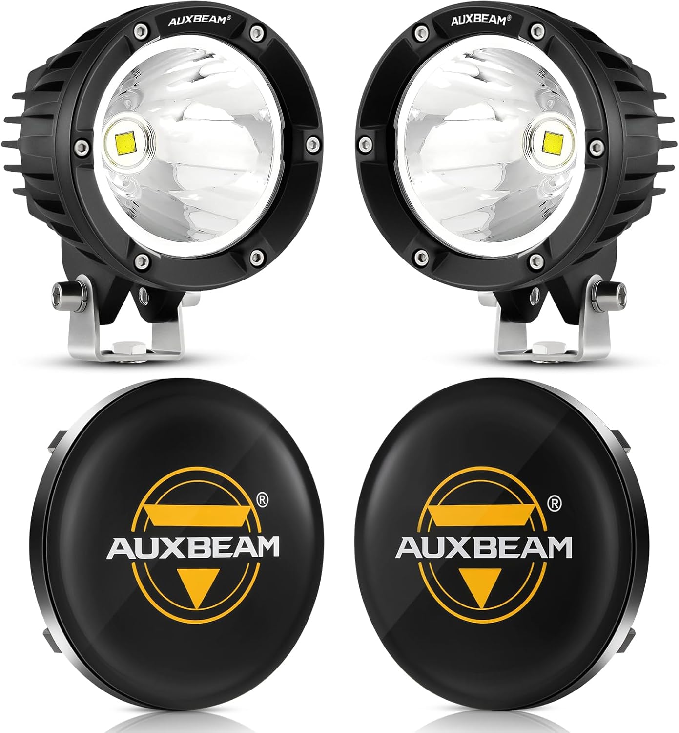 Auxbeam 4 Inch Round Offroad Lights with Black Covers Combo Kit, 72W 7200LM Spot Beam Design LED Pods Driving Fog Light with DT Wiring Harness for Truck, Jeep, Pickup, ATV, UTV, Pack of 4