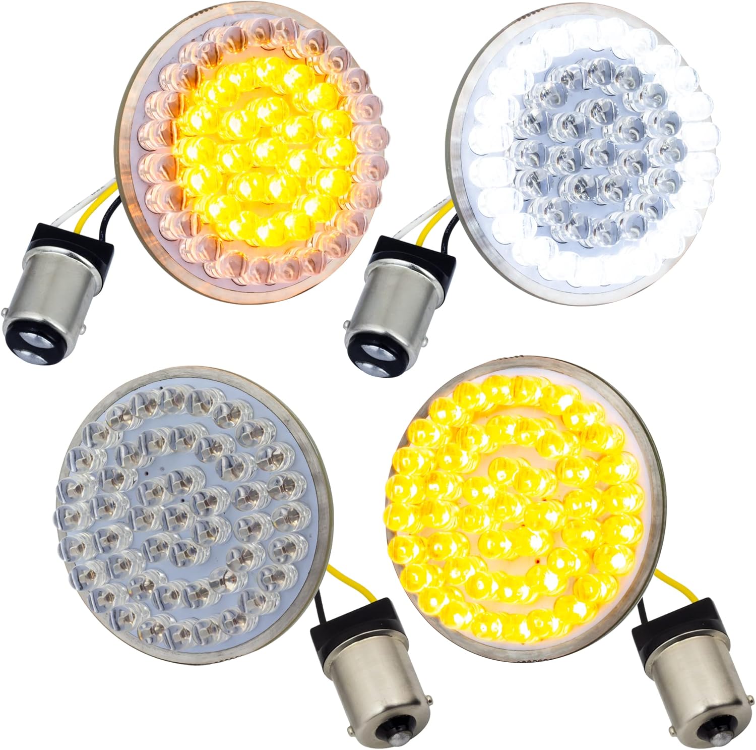 Eagle Lights 2 inch Front and Rear LED Turn Signal Kit for Harley Davidson Motorcycles - 1157 Base Front / 1156 Base Rear Amber Signals