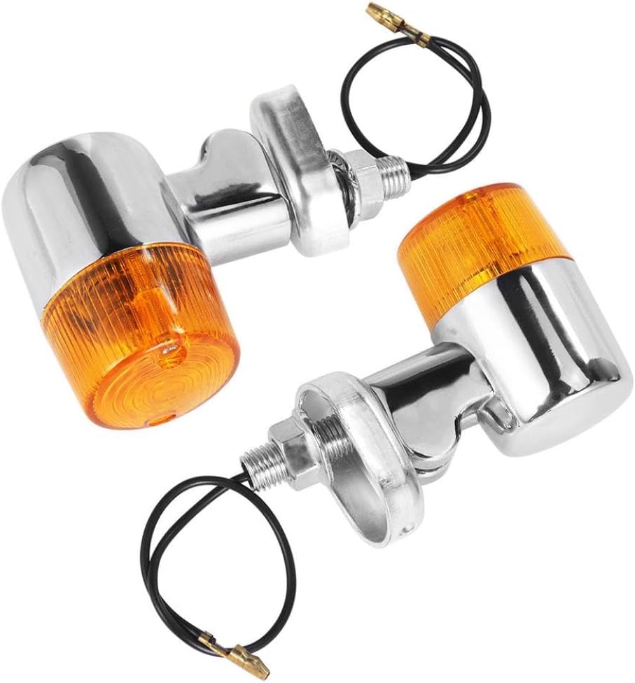 2PCS Round Amber Lens Universal 12V Motorcycle Turn Lights Indicator Lamps Compatible With Most Bikes(A Chrome)