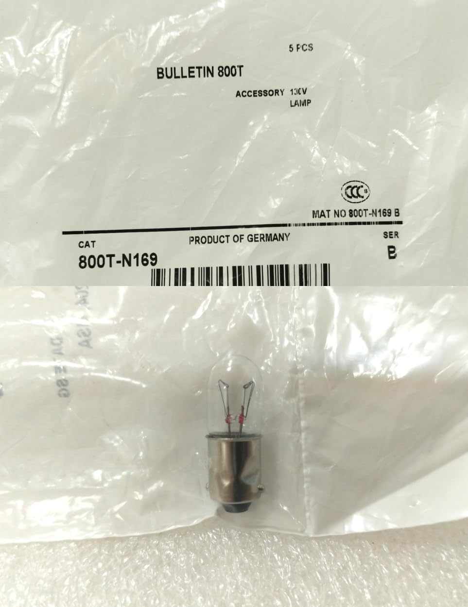 800T-N169,Replacement Lamp,Incandescent,Applicable:800T and 800H,800T PB Illuminated Push Buttons,Selector Switches,Pilot Lights,Original Packaging,Never Used,in Stock,Ship Now.