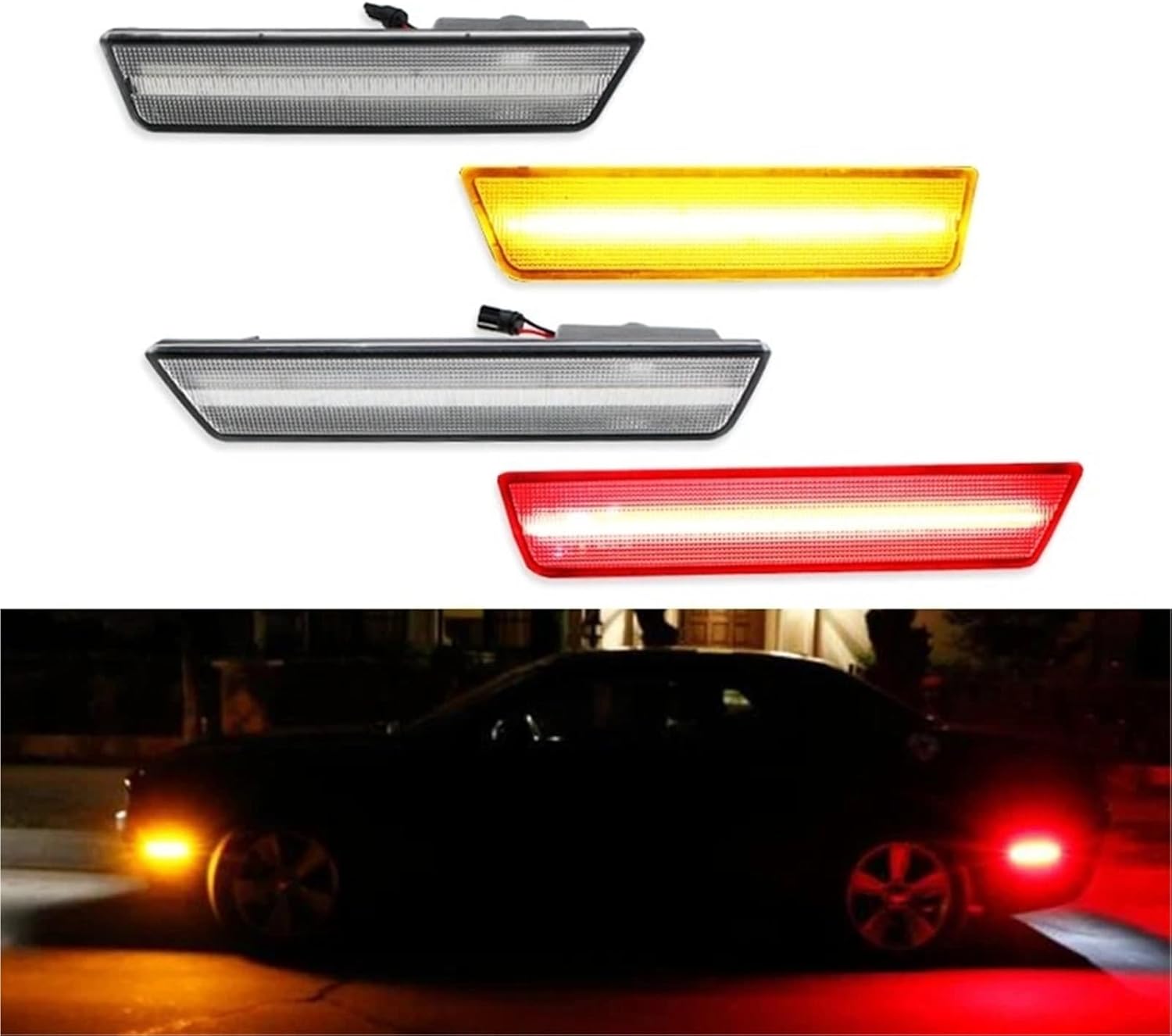 Amber/Red Full Side Marker Light For Dodge For Challenger 2008-2020 Turn Signal Light/Parking Light OEM Sidemarker Lamps Indicator Lamp(08-14 Rear white B)