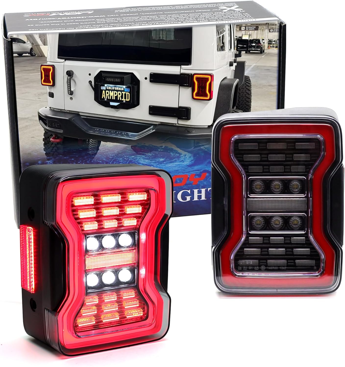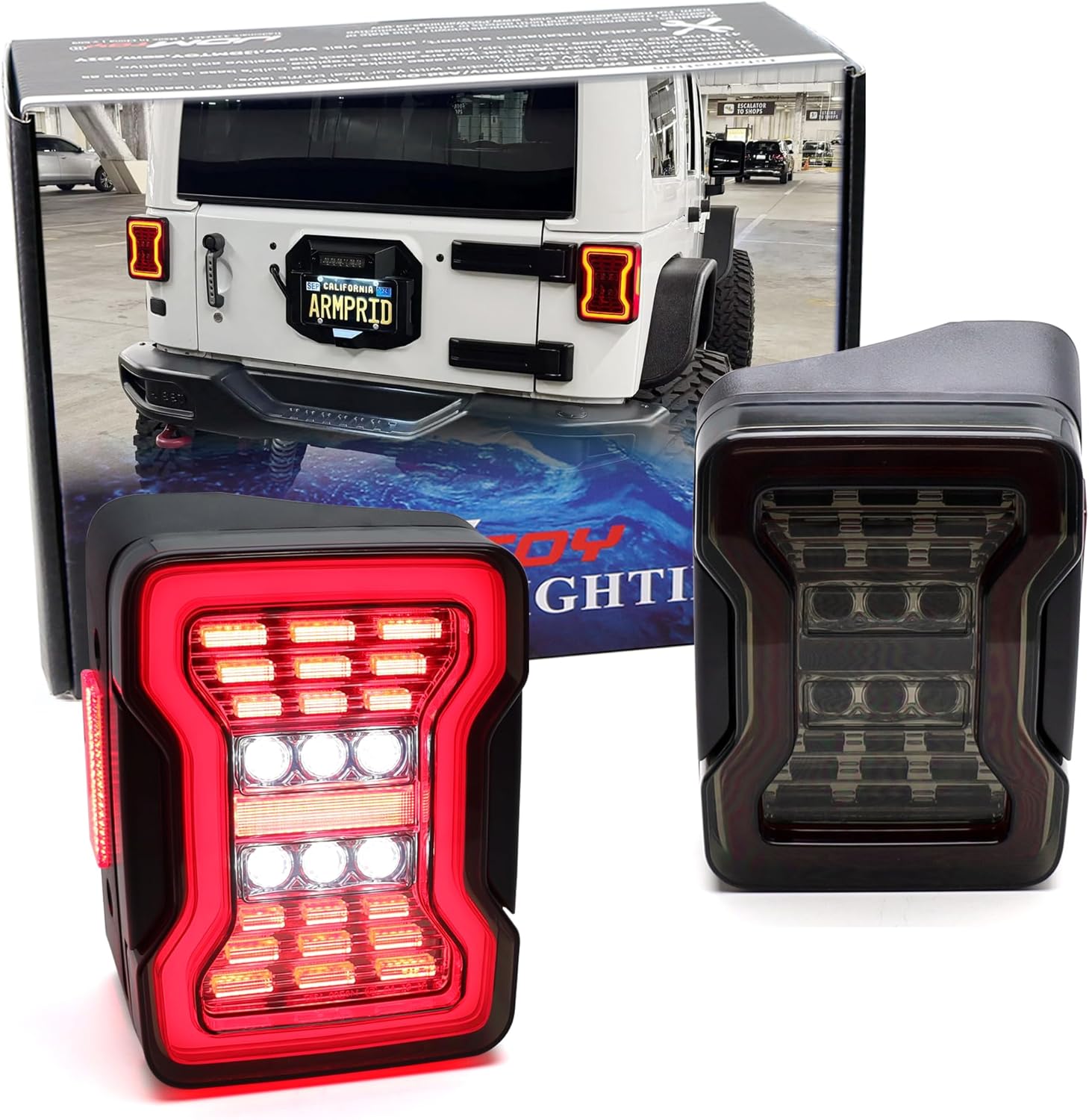 iJDMTOY Wrangler JL Style Black-Out Dark Smoked Lens 4-in-1 Full LED Tail Light Assemblies Compatible with Jeep 2007-2017 Wrangler JK