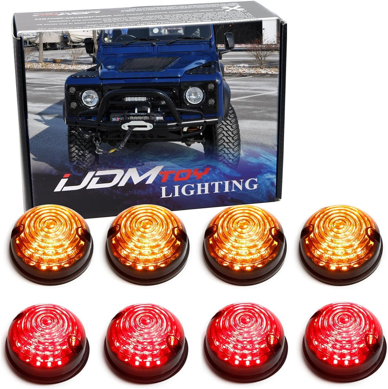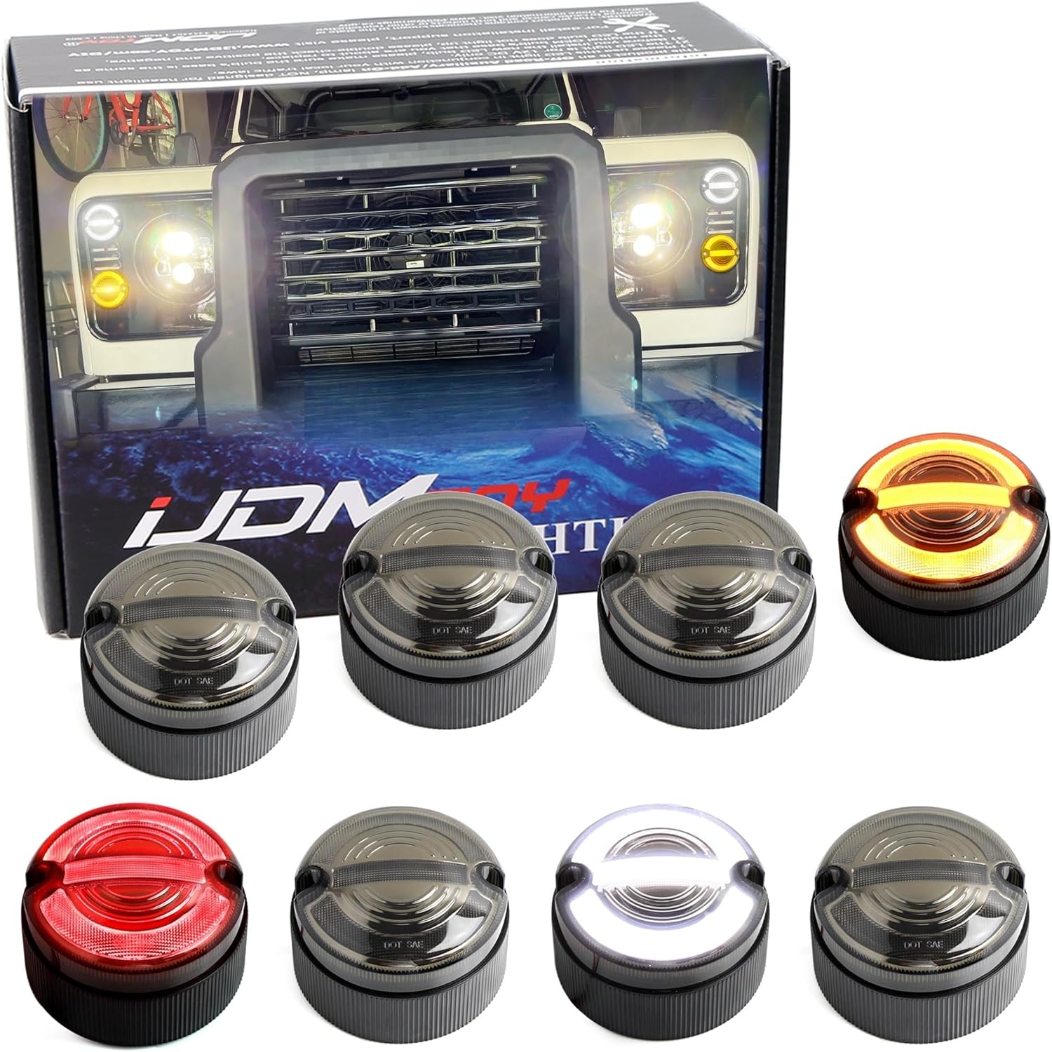 iJDMTOY 8pc Set Large 95mm Diameter Black-Out Smoked Lens Amber/White/Red Full LED Front/Rear Turn Signal, Driving/Tail Brake Light Upgrading Kit Compatible with 1983-2016 Land Rover Defender