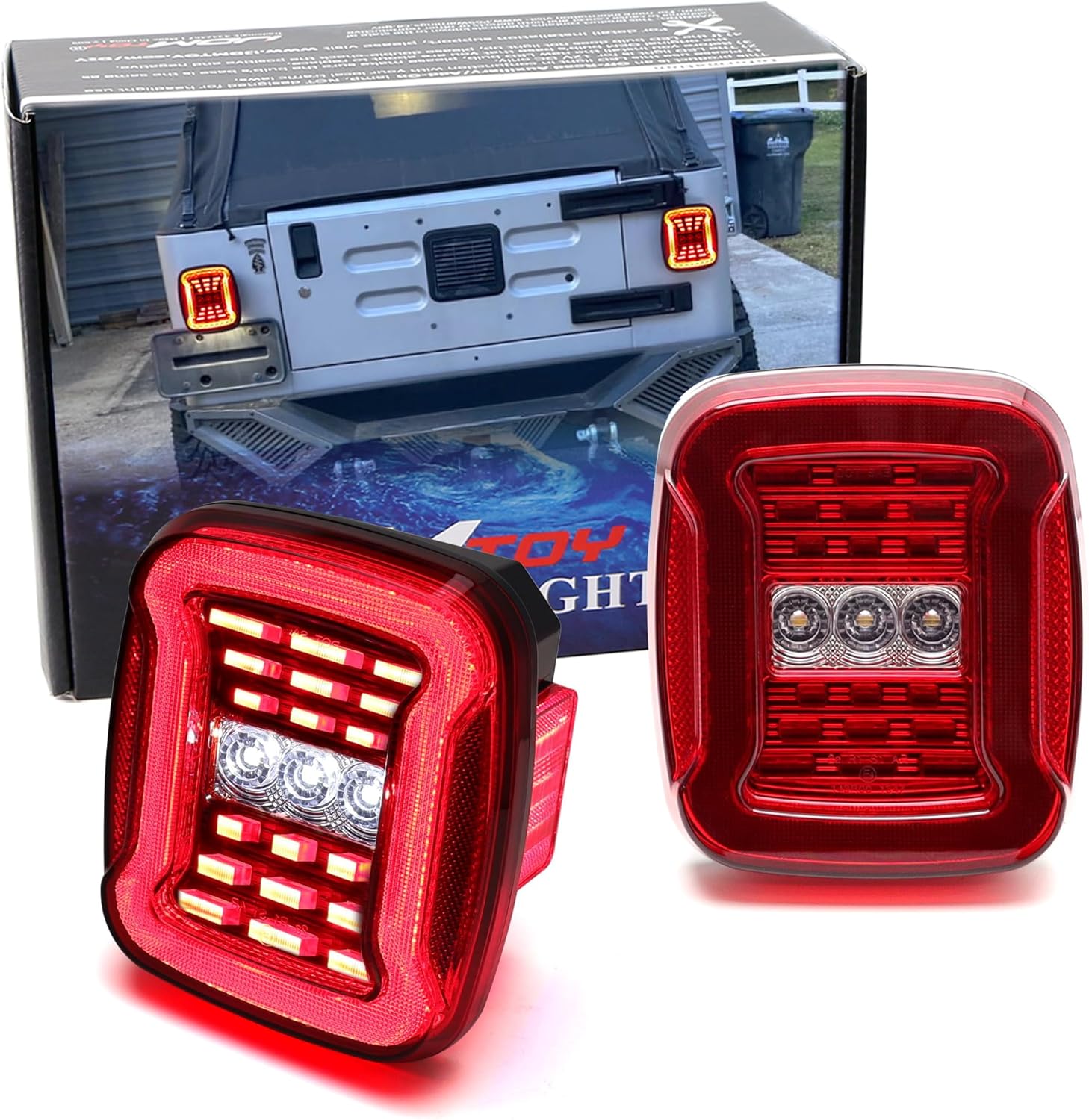 iJDMTOY Wrangler JL Style Dark Red Lens 4-In-1 Full LED Tail Light Assemblies Compatible With Jeep 1976-2006 CJ5 CJ7 CJ8 Wrangler YJ TJ