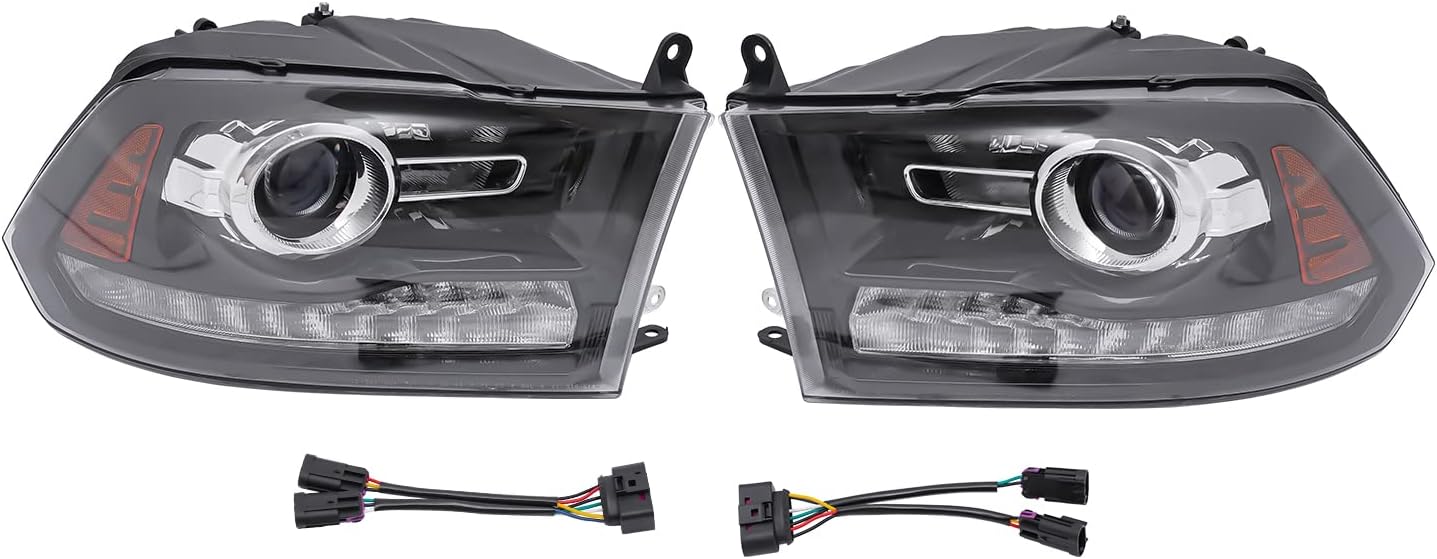 Headlight Assembly Headlamp For 2013-2018 Ram 1500 2500 3500, 2019 Ram 1500 Classic Halogen Headligh Light with LED DRL Left&Right Side Black Housing CH2502245, CH2503245