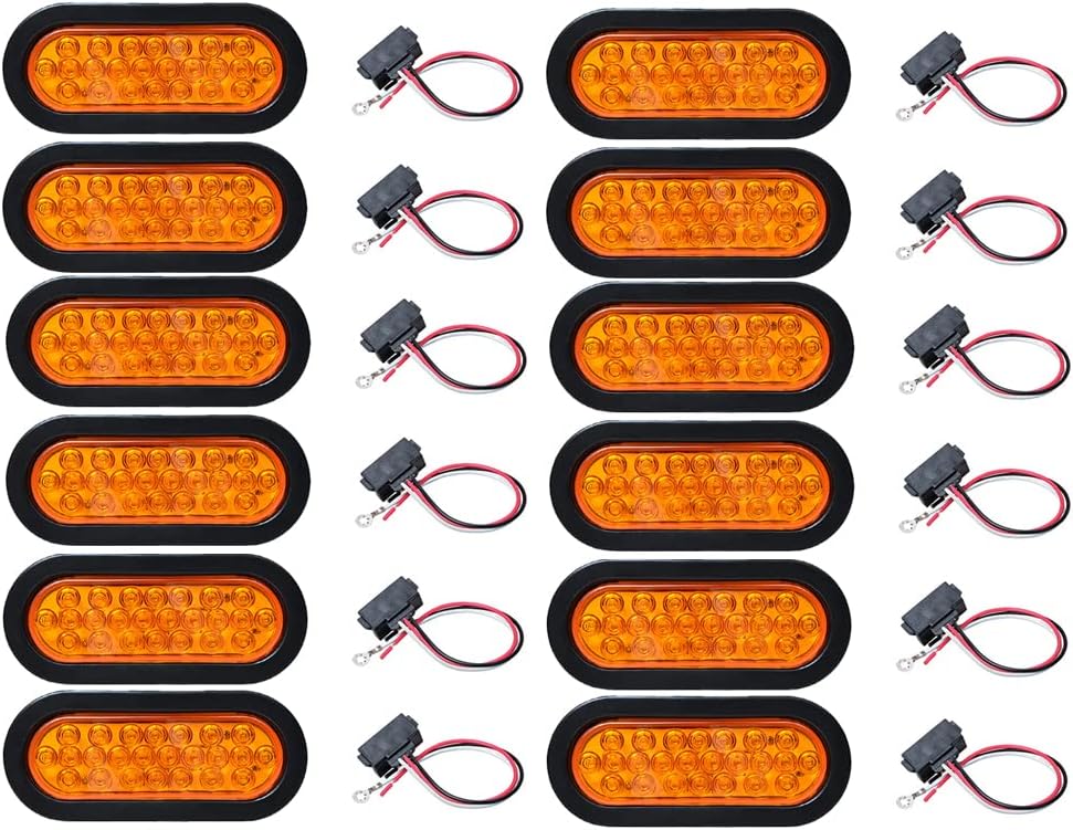 amopacorp 12pcs Amber 24-LED Oval Oblong Sealed Turn Signal Indicator Tail Light Grommet Mount for Trailer Truck RV 12V