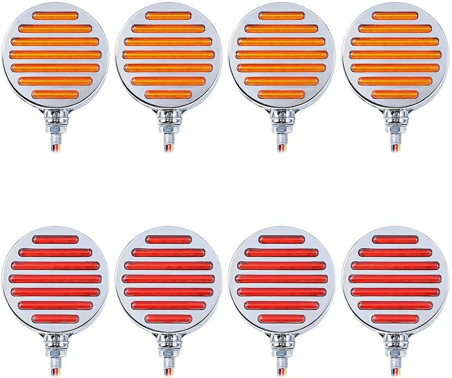 Truck Trailer Tractor Double Face Corner Turn Signal Stop Tail Side Marker Light Compatible with Kenworth Peterbilt Freightliner Western Star Volvo International Mack Pacca (8PCS, Amber Red 98-LED)