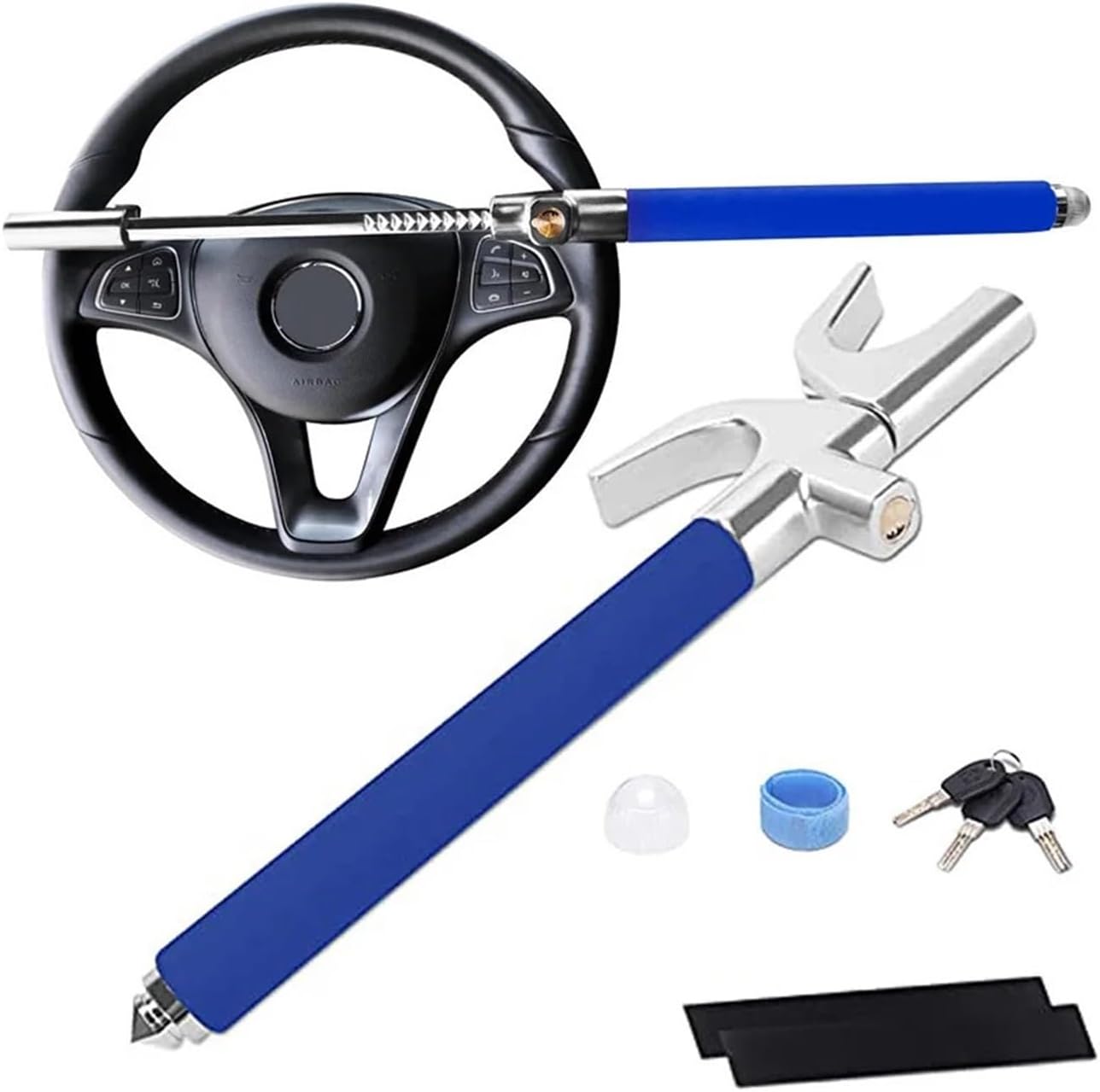 Car Steering Wheel Lock Universal Car Lock Anti Theft Lock Blue with 3 Keys Collapsible Safety Accessory Compatible for Auto Truck SUV Van