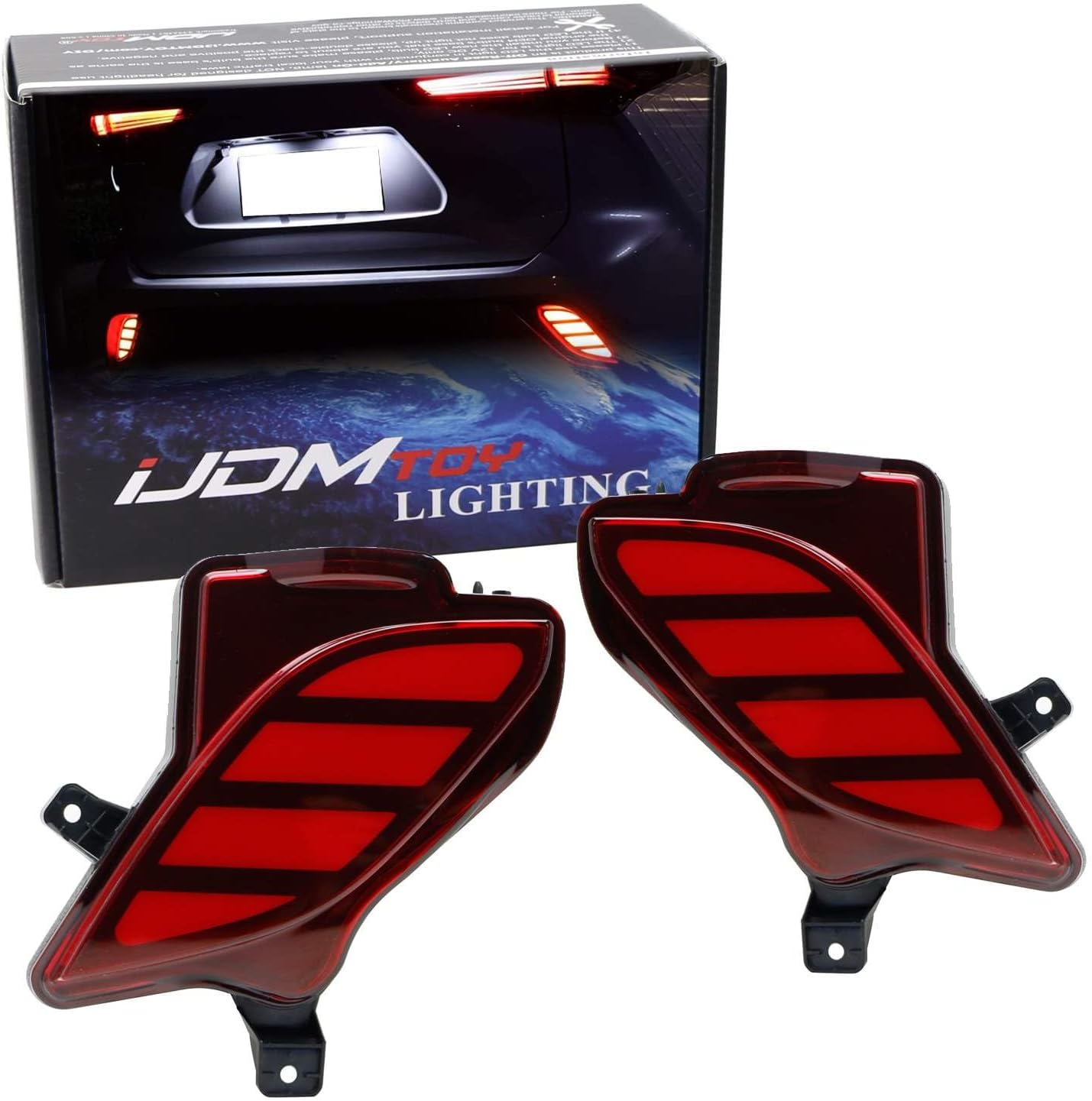 iJDMTOY JSR Style Red Lens LED Bumper Reflector Lights Compatible With 2017-18 Hyundai Santa Fe Sport, Function as Tail, Brake & Rear Fog Lamps
