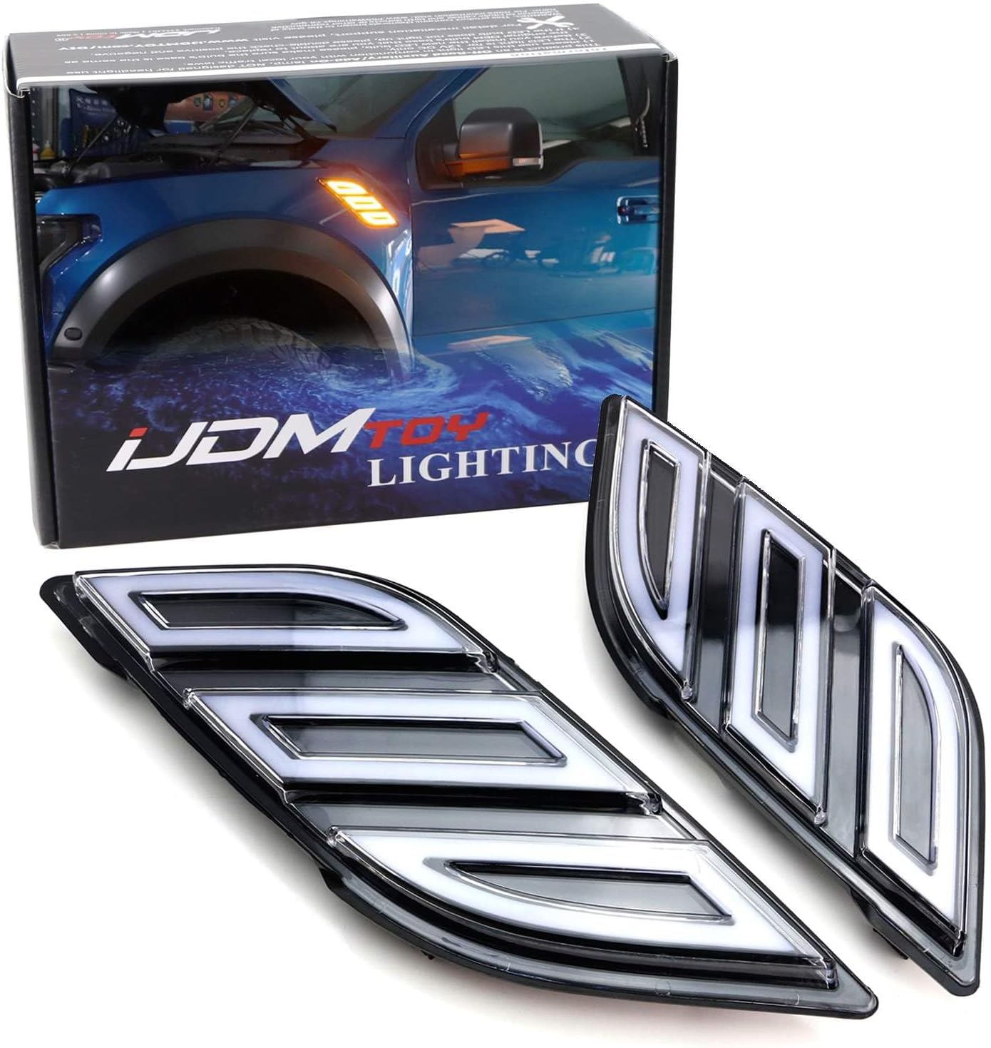 iJDMTOY White/Amber Switchback Sequential Blink Full LED Fender Grille Side Marker Light Kit Compatible With 2017-2020 Ford Raptor Truck