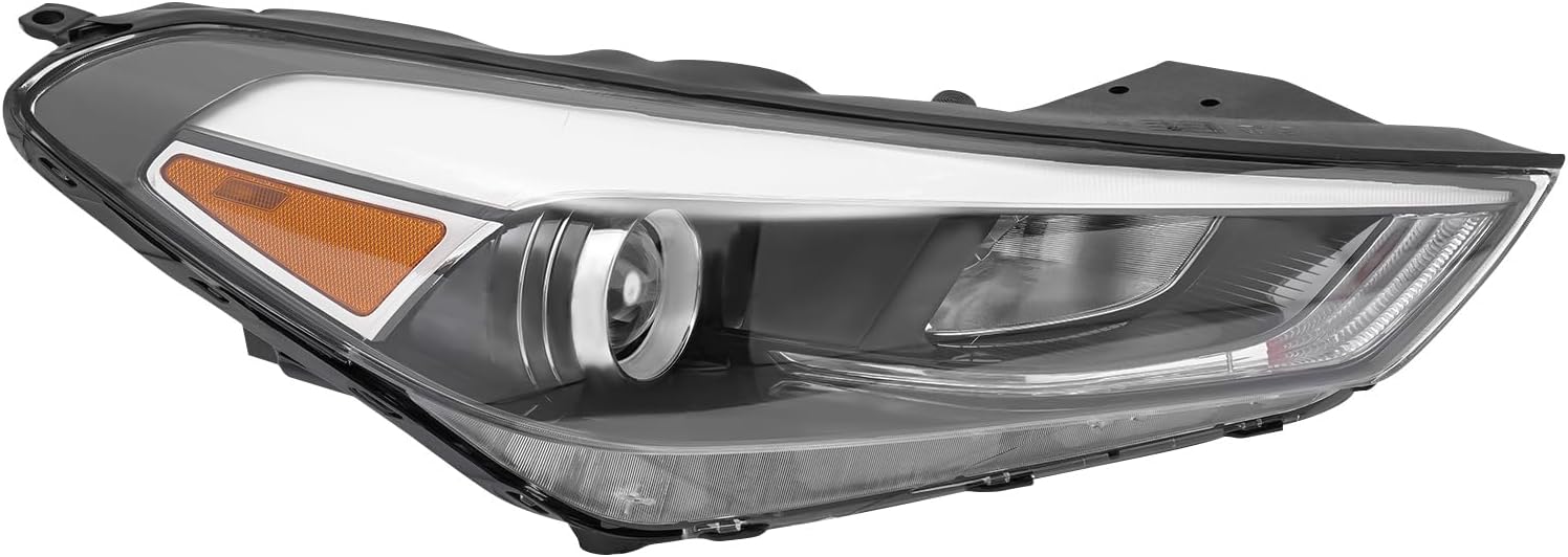 Headlight Assembly Headlamp For Hyundai 2016 2017 2018 Tucson Clear Lens Halogen Headligh with LED DRL Light Right Side Black Housing (R)