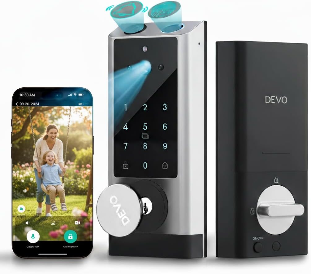 Devo G1 Video Smart Lock with Camera&Doorbell,6-in-1 Keyless Entry Door Lock with App Remote,Fingerprint ID,Auto Locks,Built-in Wi-Fi Smart Deadbolt for Front Door,Easy Install,Waterproof,BHMA Grade 3