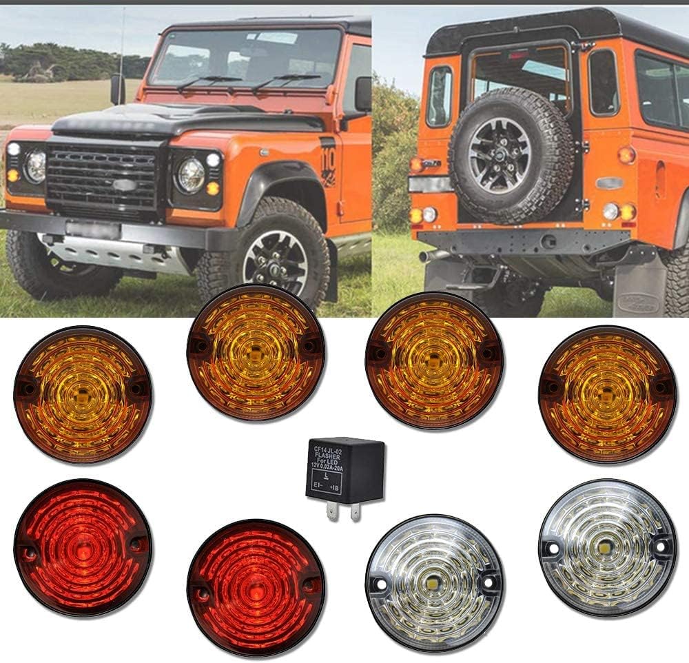 Defender Led Light Update Kits – Standard Size Amber Indicatior Front Side Light Rear Stop Tail Light For L.and Ro.ver Defender 90/110 With Flasher Total 8pcs 73mm 4*Yellow+2*Clear+2*Red Led Light