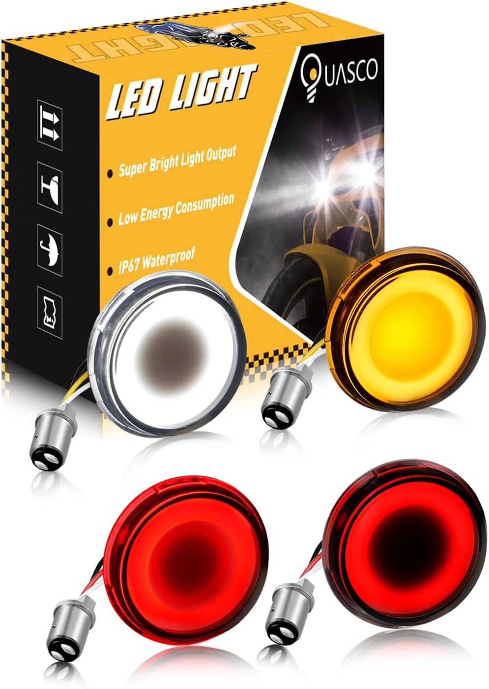 QUASCO 1157 Front Rear LED Turn Signals 2 Inch Bullet Turn Signal Light Integrated Smoked Lens Compatible with Harley Softail Sportster Road King Electra Glide Iron 883 Touring