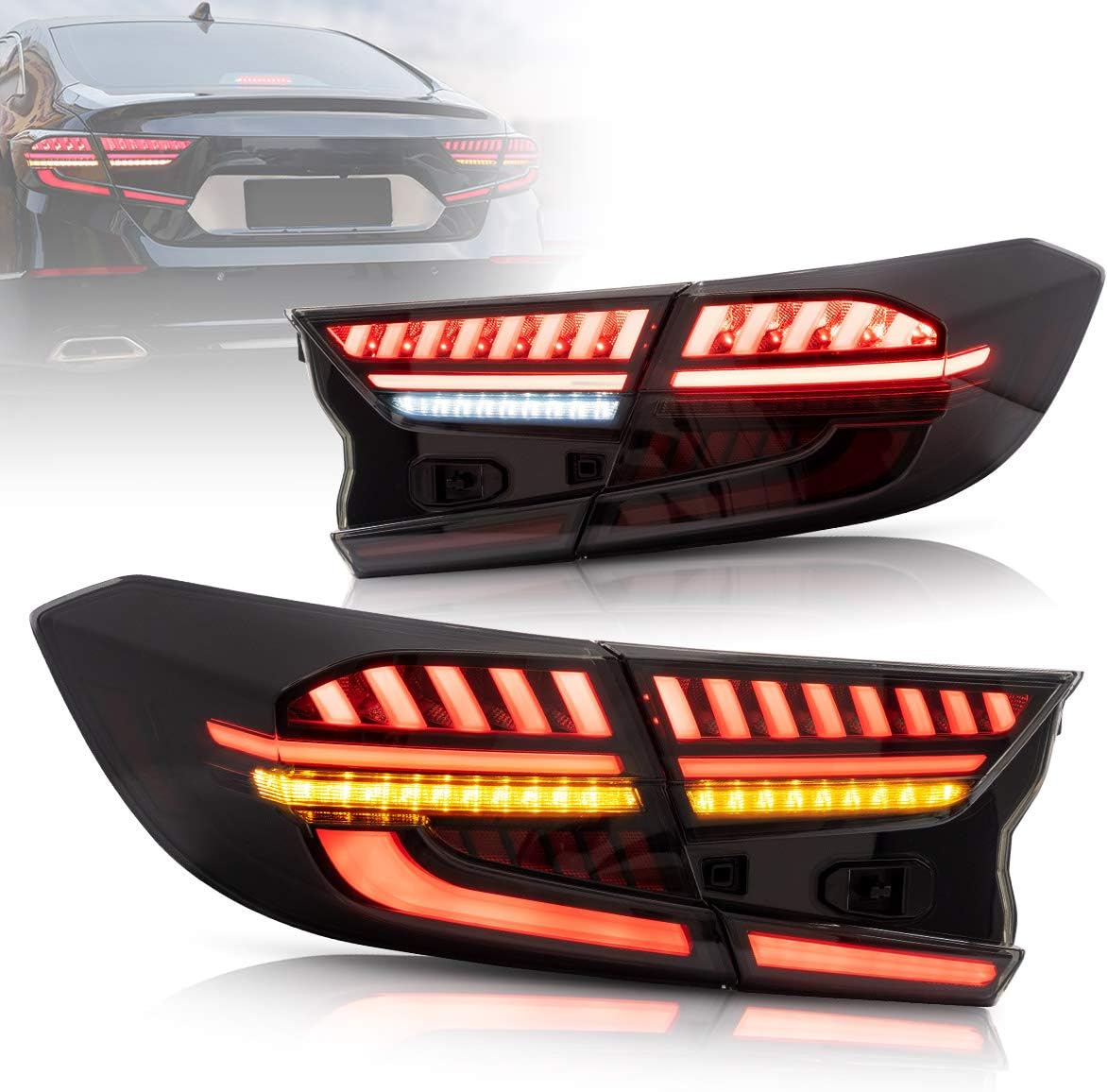 VLAND LED Smoked Tail Lights Compatible with Honda Accord 2018 2019 2020 2021 2022 10th Gen Rear Lamps with Dynamic Animation Breathing DRL, Sequential Turn Signal 3D, YAB-HD-0307, Pair