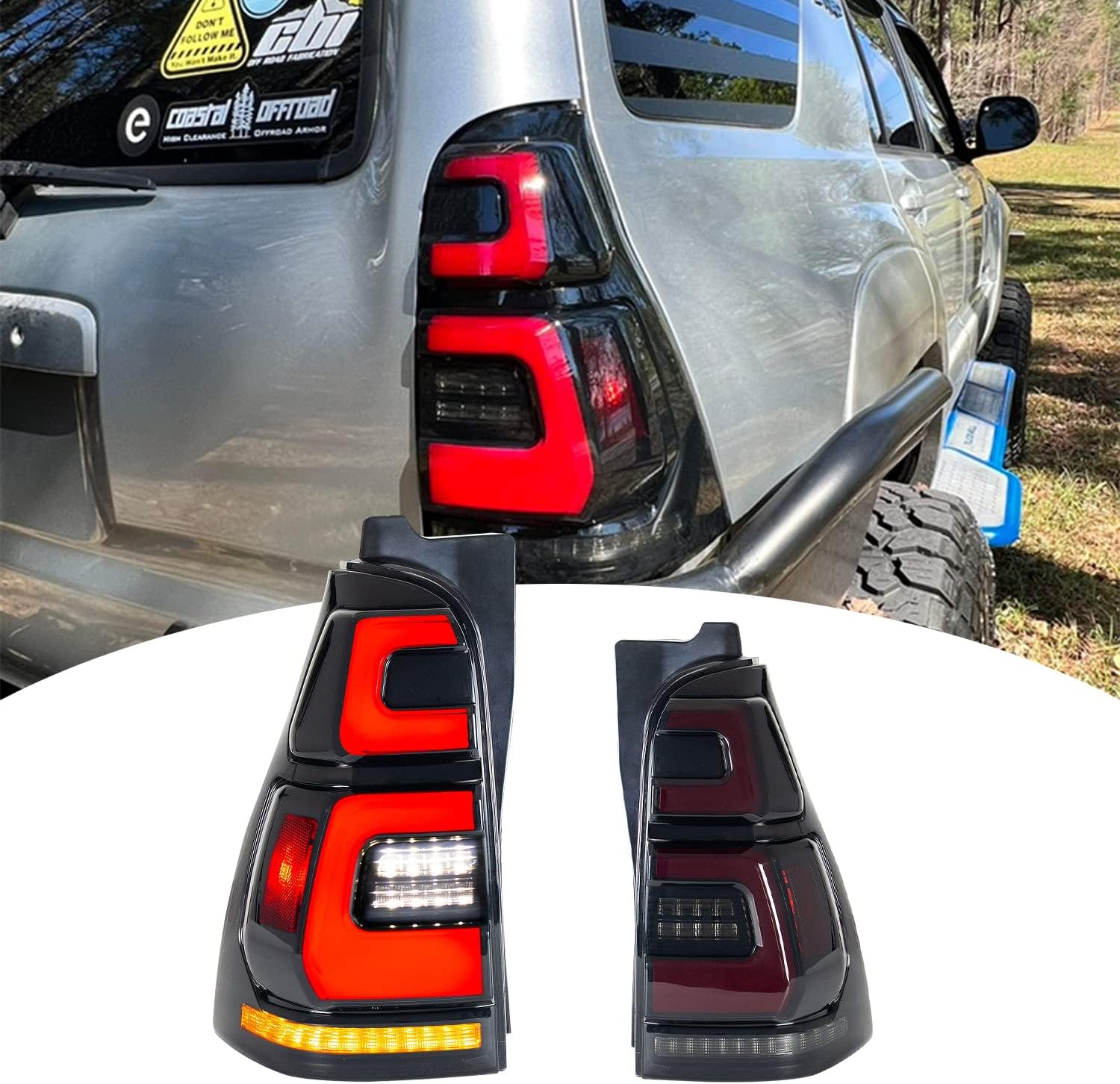 HCMOTIONZ LED Tail Lights Fit For Toyota 4runner 4th GEN 2003-2009 Limited/SR5/Sport tail lights With Startup Animation DRL, Sequential Turn Signal Smoked Rear Lamps Accessary 2pcs