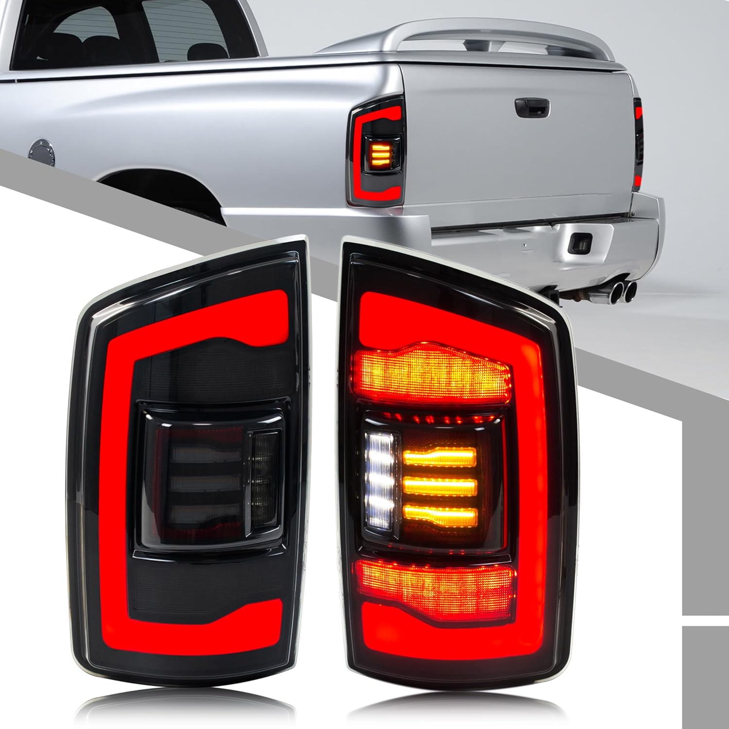 LED Tail Lights Assembly Compatible with Dodge Ram 2002-2005 3rd Gen 1500 2500 3500 Start-up Animation Sequential Turn Signal Rear Lamps Accessory [Not Fit 2006-2008 Model]