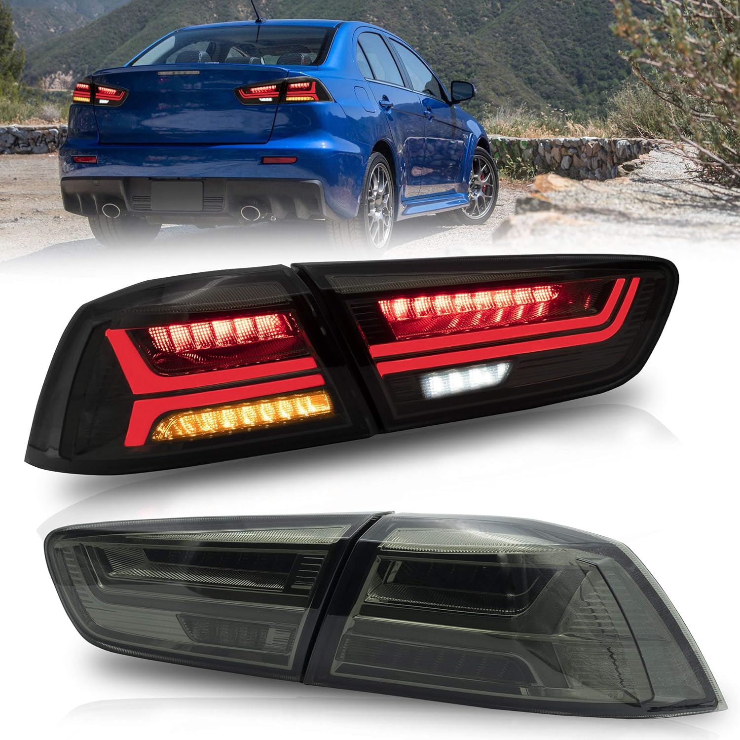 VLAND Taillights Fit for Mitsubishi Lancer EVO X 9th Gen 2008-2020, with Sequential Turn Signal, Smoked